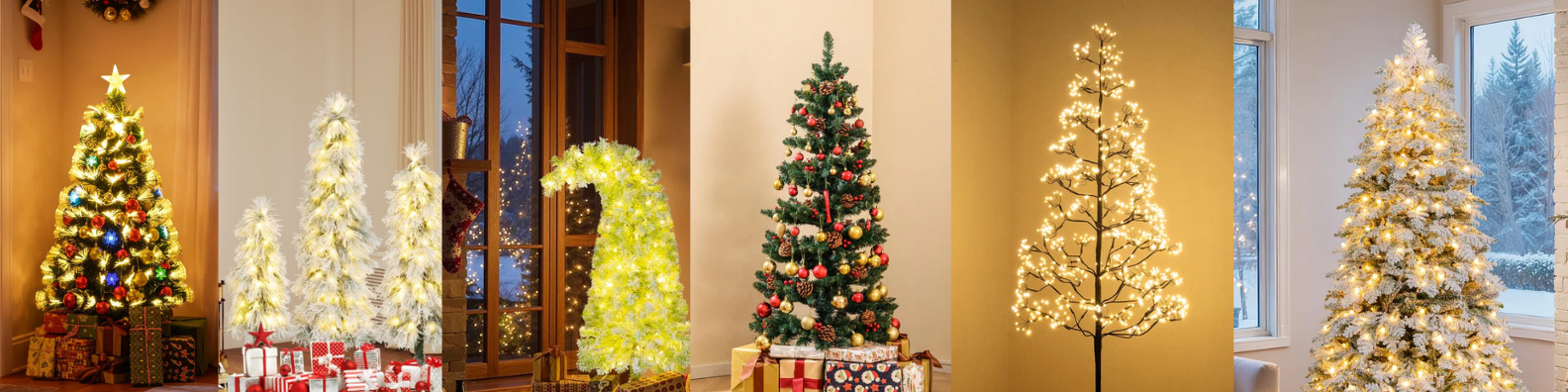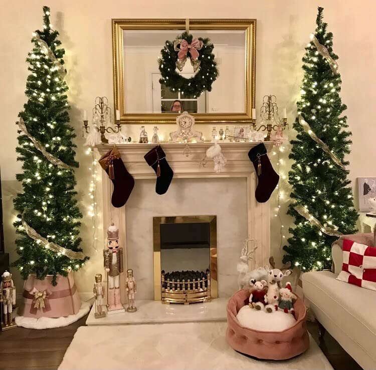Pre-lit Artificial Pencil Christmas Tree with Warm White UL-listed Lights