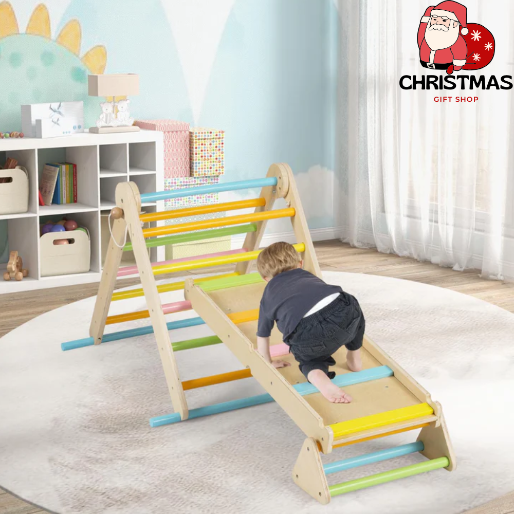 GYMAX 4 in 1 Kids Climbing Set, Wooden Toddler Climber with Slide, Outdoor Indoor 3 Sides Climbing Frame