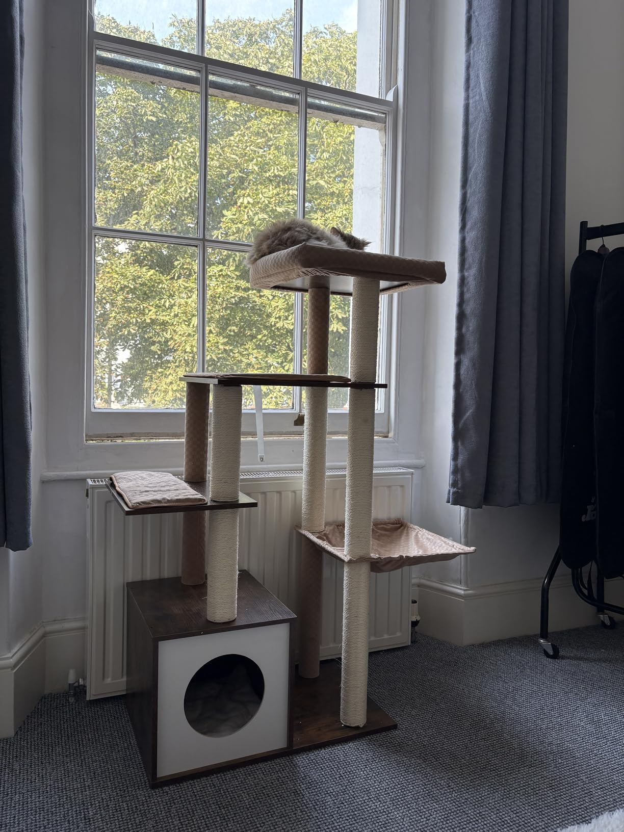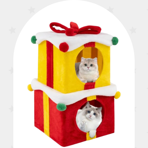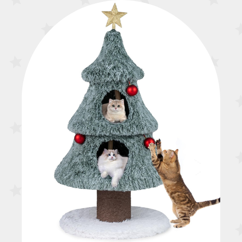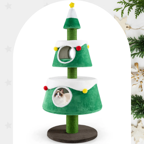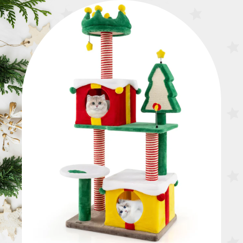 Wooden Cat Activity Center with Sisal Scratching Posts and Hanging Balls