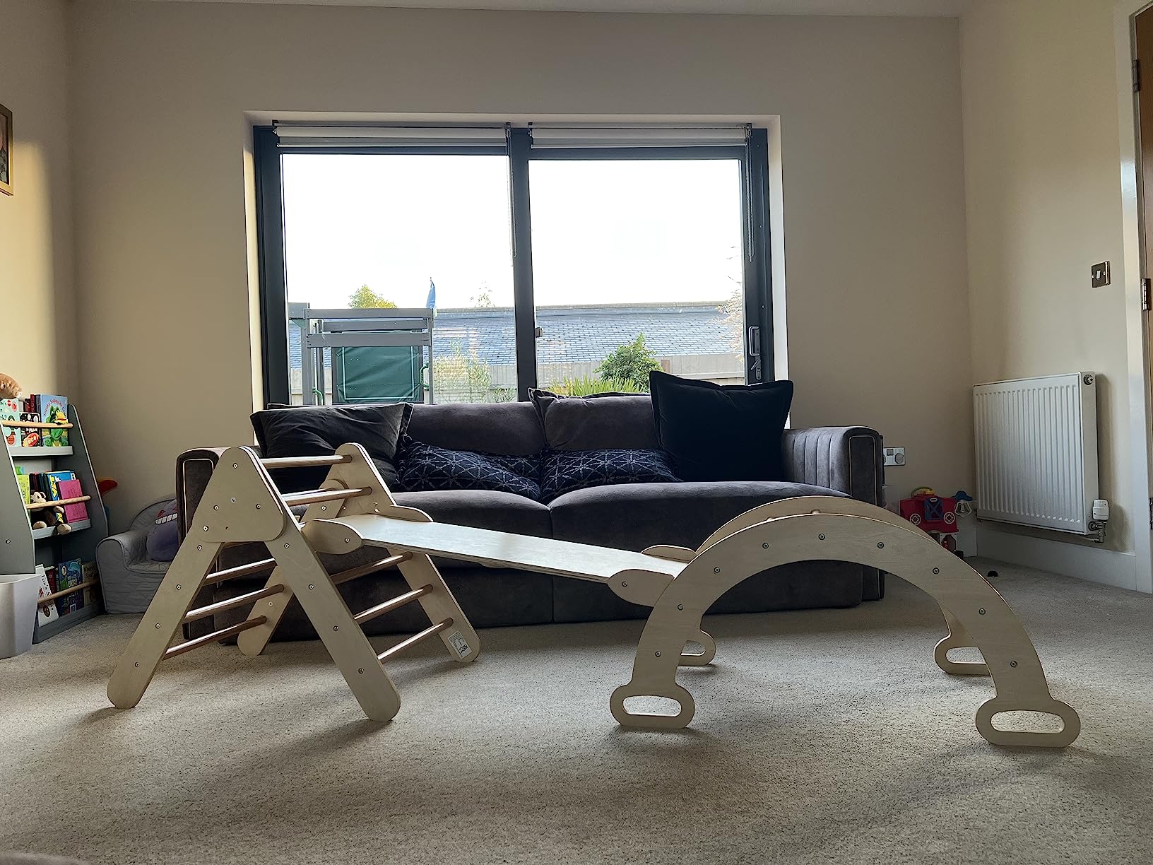 Was a bit dubious when ordering since we had only seen sets for sale at triple this price, however the product was delivered speedily, in 1 neat package. Building was quite easy with straight forward instructions, the hardest part was choosing which order to put the coloured poles.The kids have not stopped playing on it, our eldest is 22kg and it's definitely strong enough for himThe slide board is reversible to make a climbing wall, and can be attached to either the arch or triangle, or as a bridge between them both