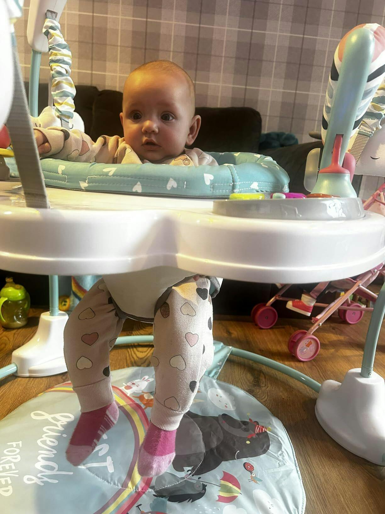 • ✔STABLE & SAFE BOUNCING STRUCTURE- The built-in strong springs provide gentle and stable rebound, and the heavy-duty metal frame with firm connection and non-slip foot pads keeps your baby safe and secure while bouncing or playing. Weight capacity: 12kg.
