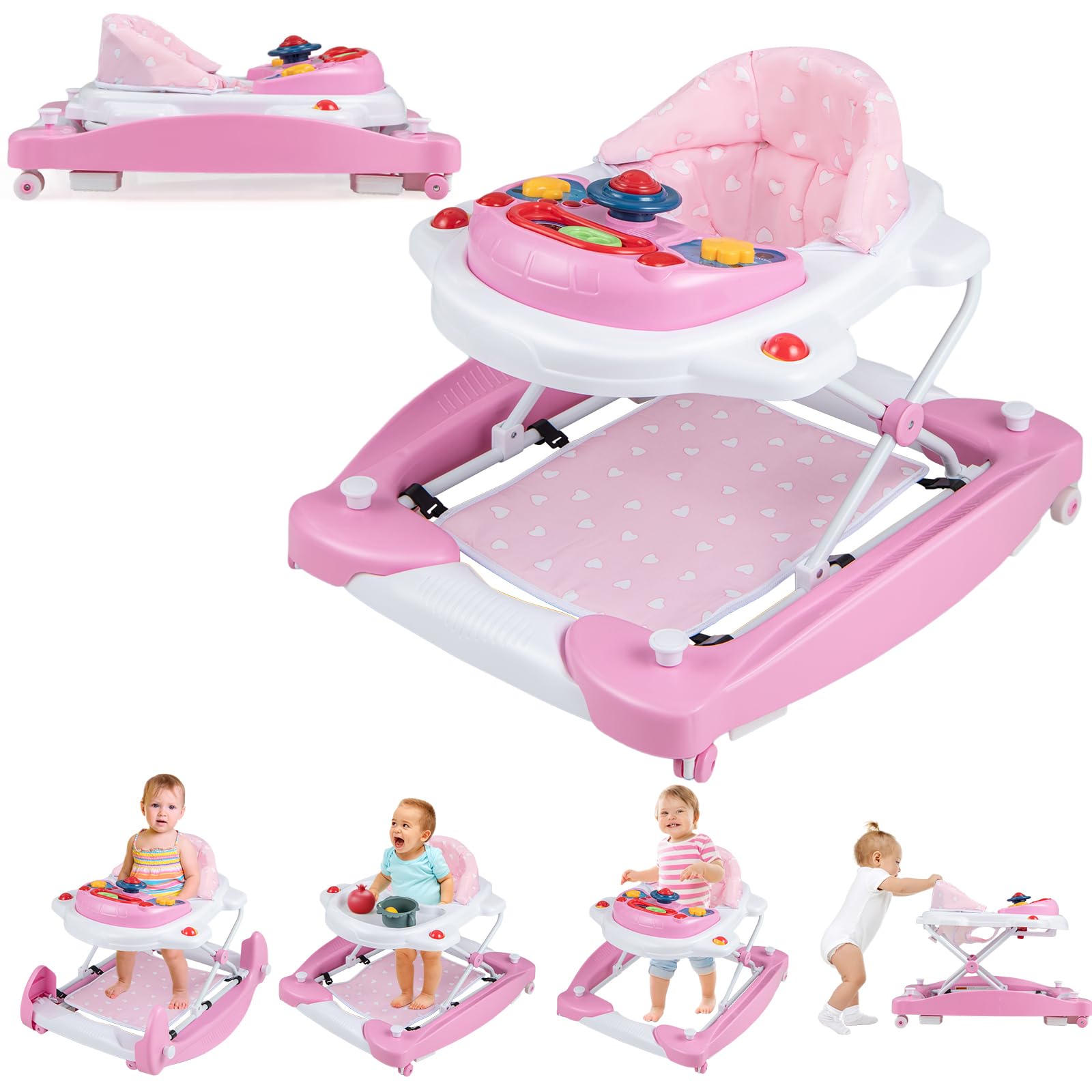 GYMAX Baby Walker, 6 in 1 Foldable Toddler Push Along Walker with Wheels, Music Tray, Lights and Rocker Mode