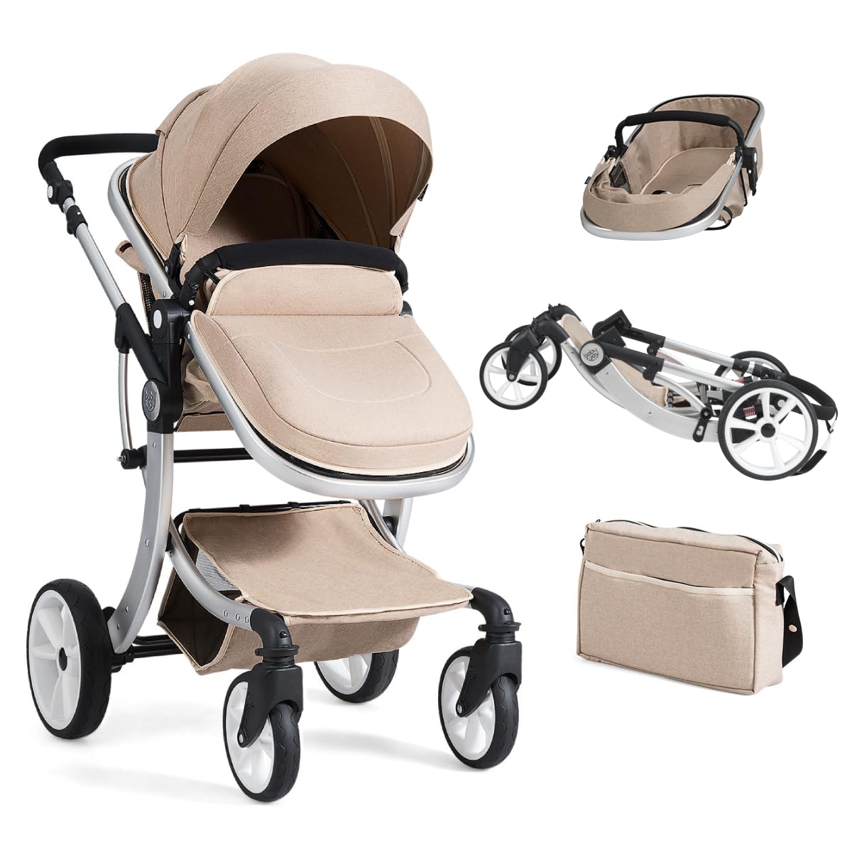 • ✔STURDY STRUCTURE & FOLDABLE DESIGN- The baby stroller is made of a lightweight aluminum frame that is rugged and stable, which can give your baby a cozy sleeping and resting space. With the button on the side, you are able to fold this pram into a compact size within a few seconds, which is easy to carry and store.