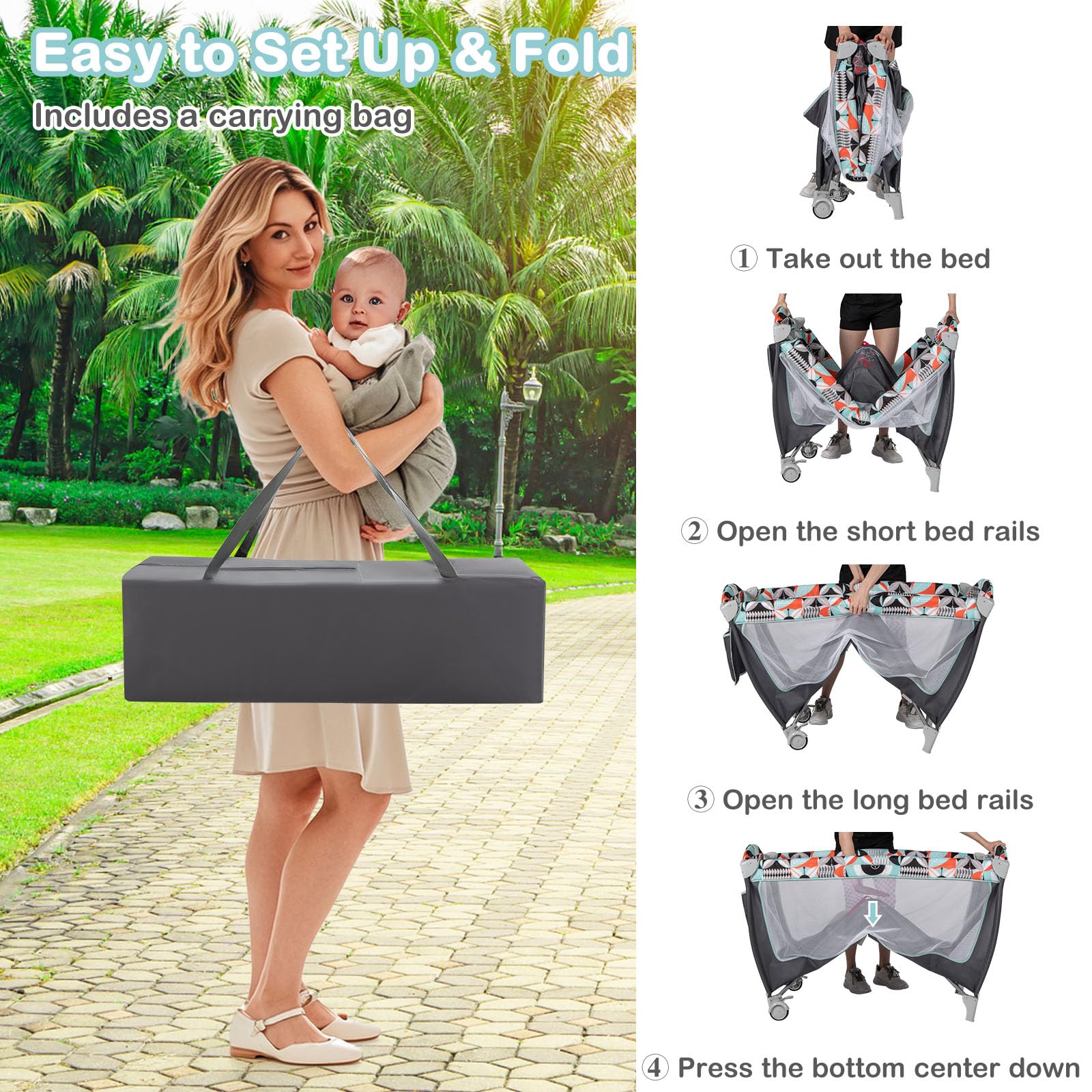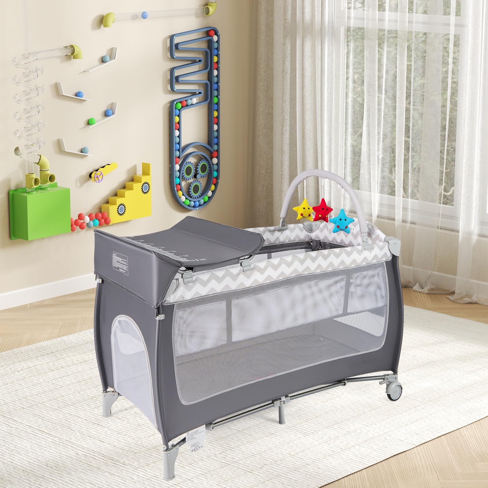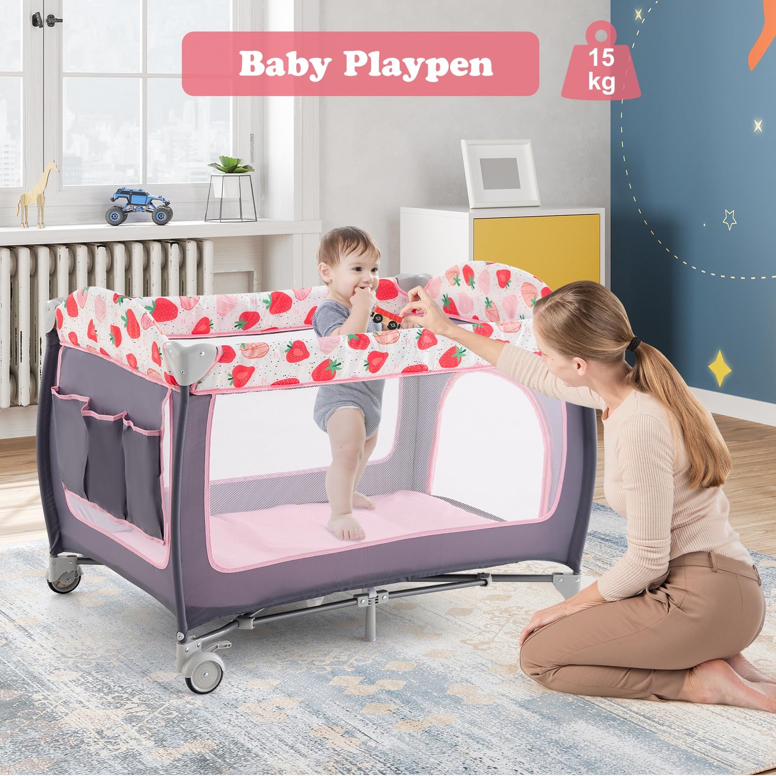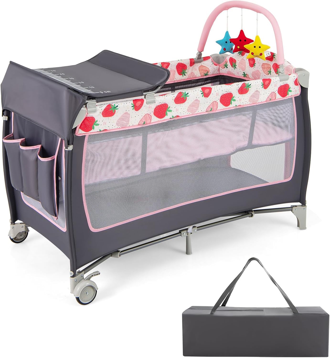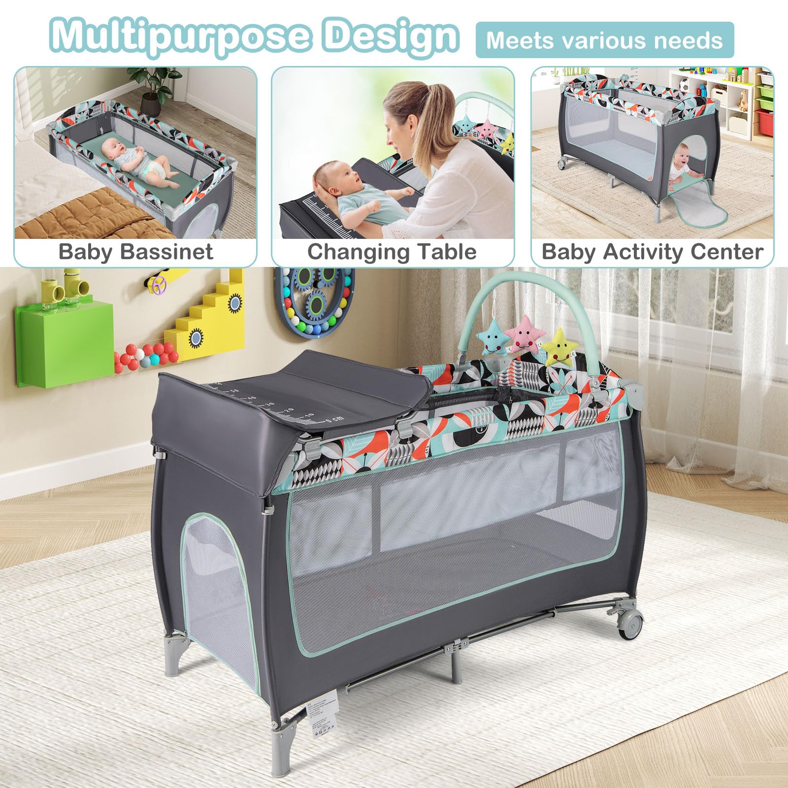 3 in 1 Baby Playard Portable Infant Nursery Center with Toy Bar