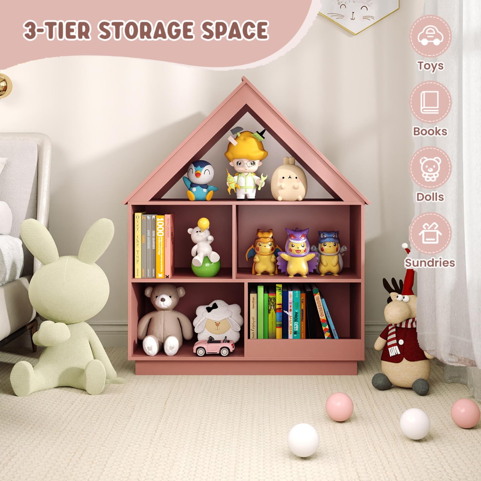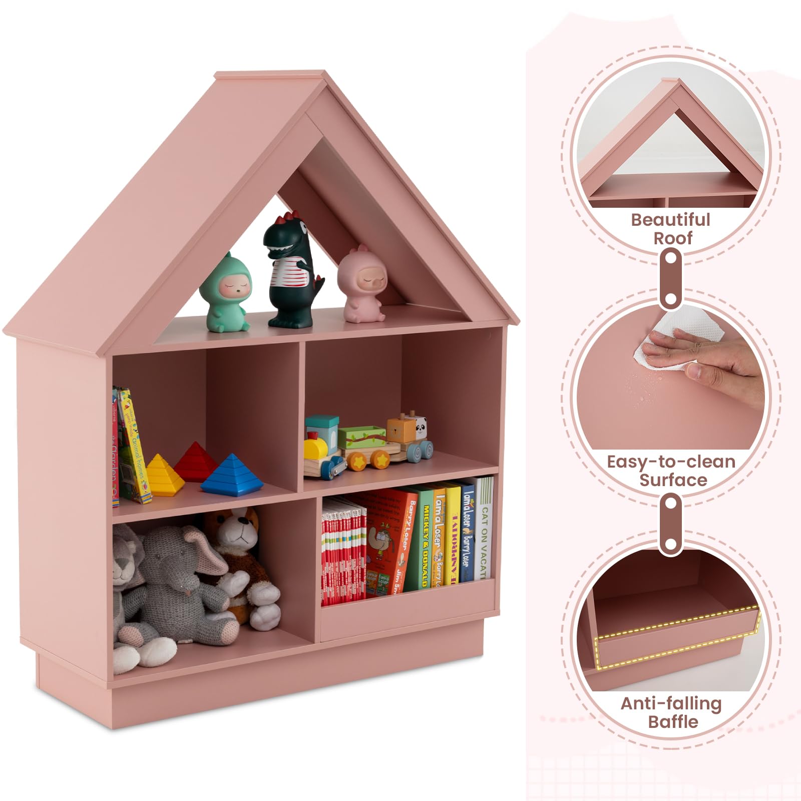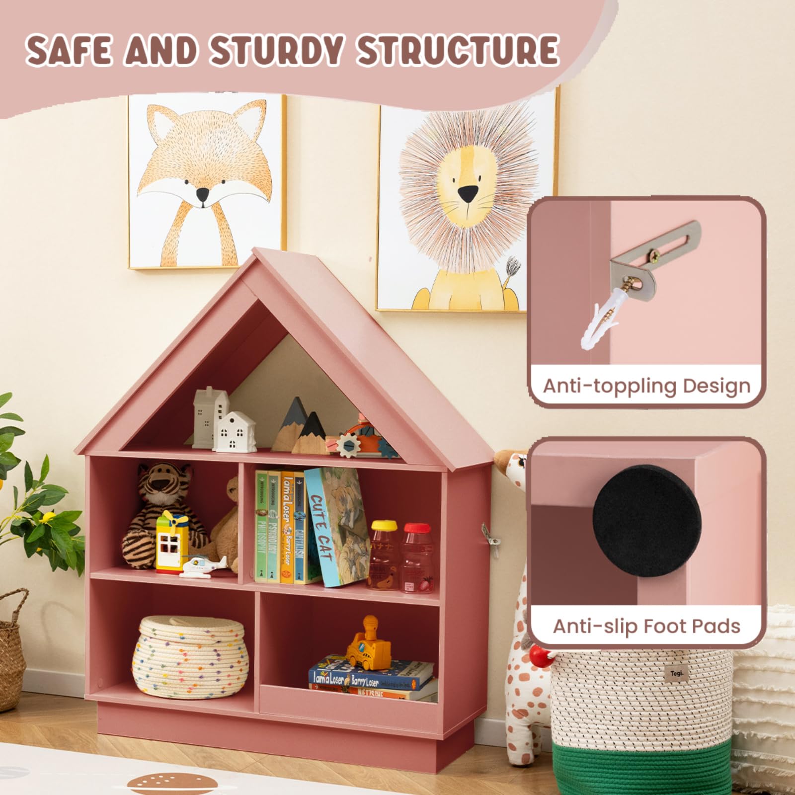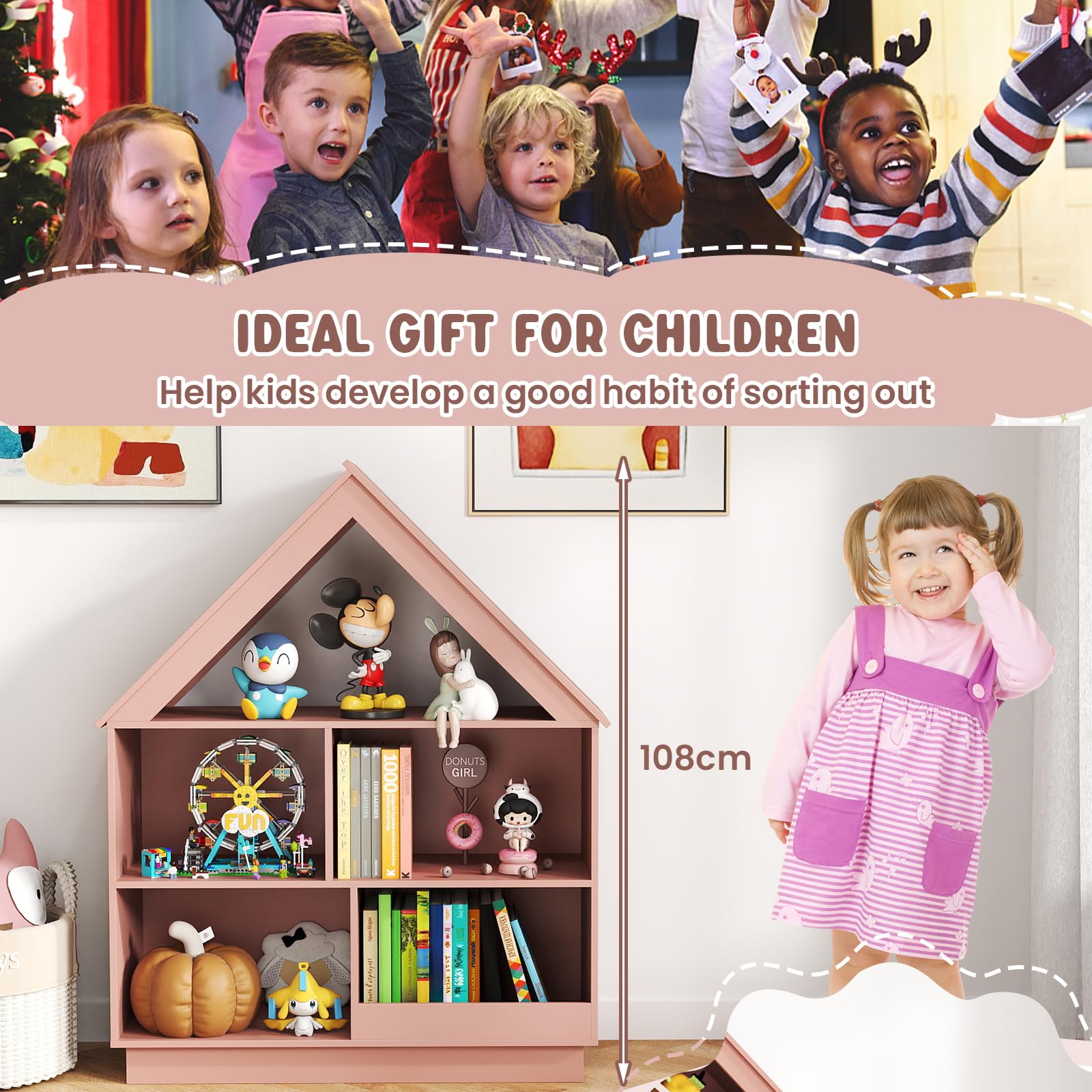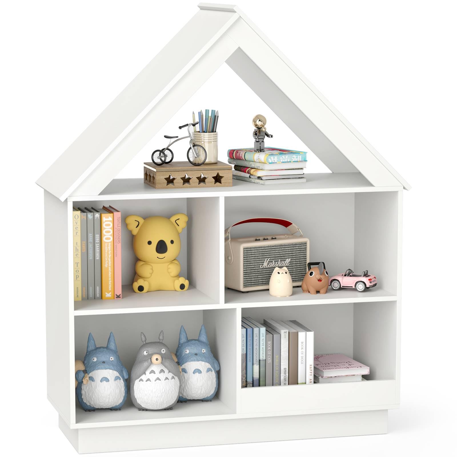 - ✔OPTIMAL HEIGHT & OPEN DESIGN- With 108 cm optimal height and open design, the wooden house-shaped bookcase is suitable for children of different heights. The open design also keeps kid's items accessible.
