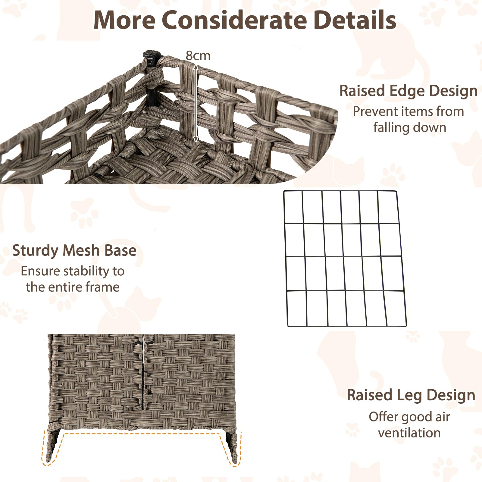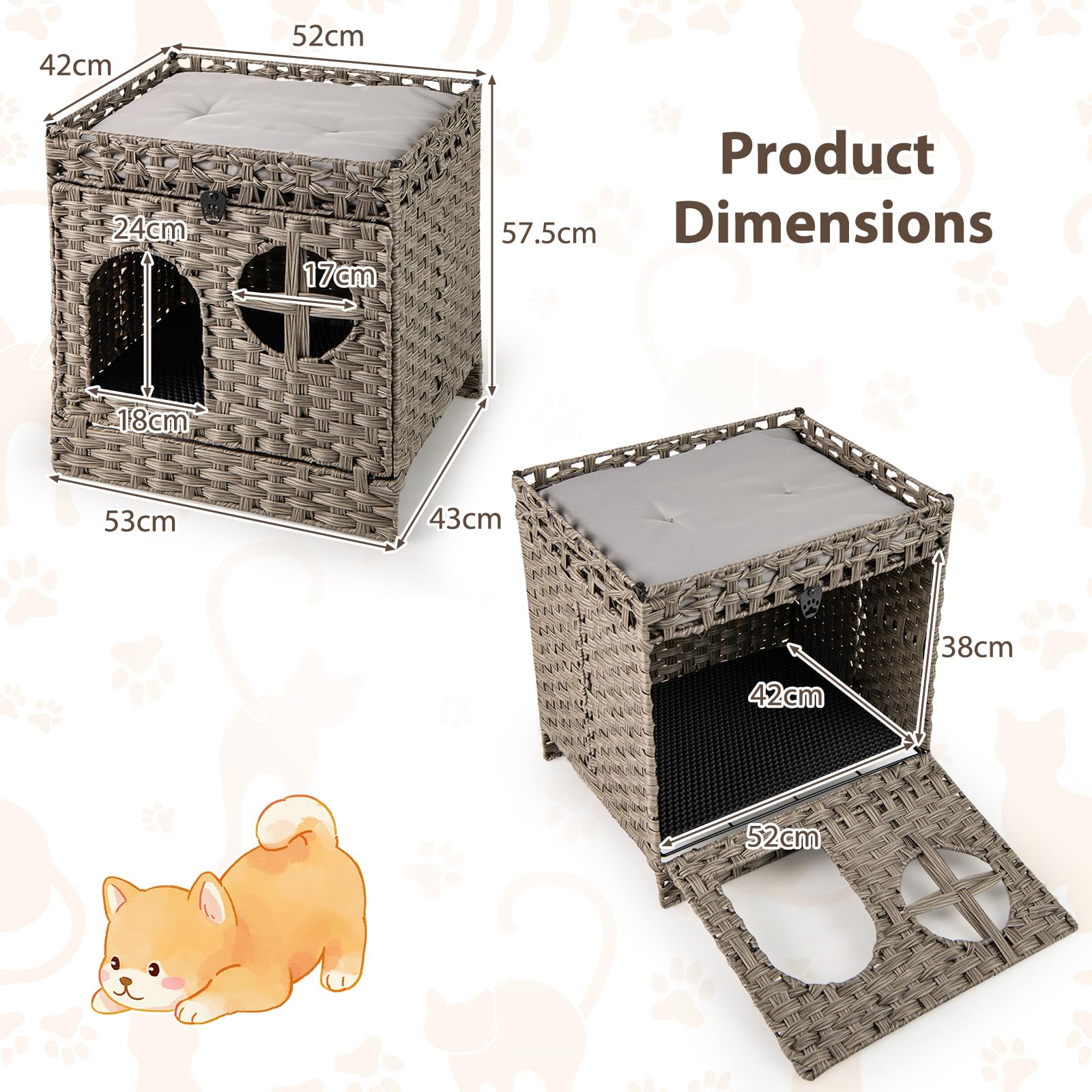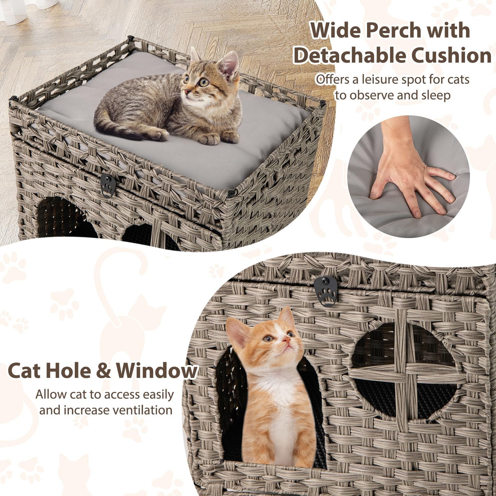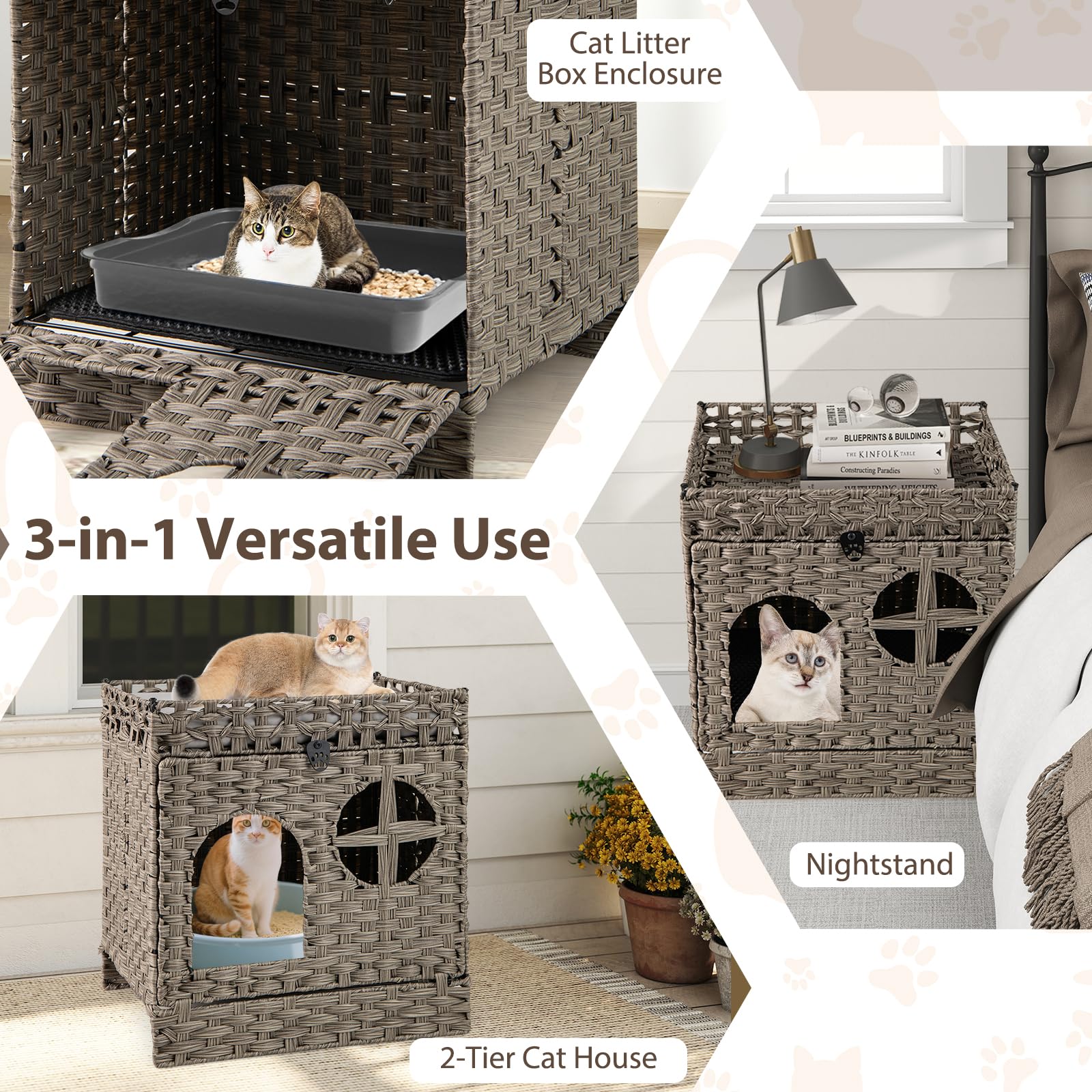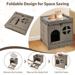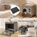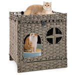 Foldable 2-tier Rattan Cat Litter Box Enclosure with Litter Mat