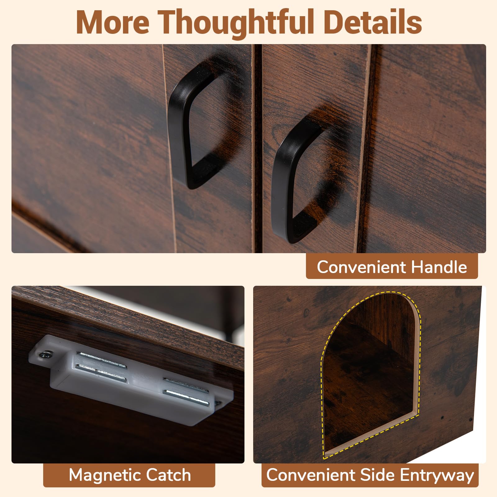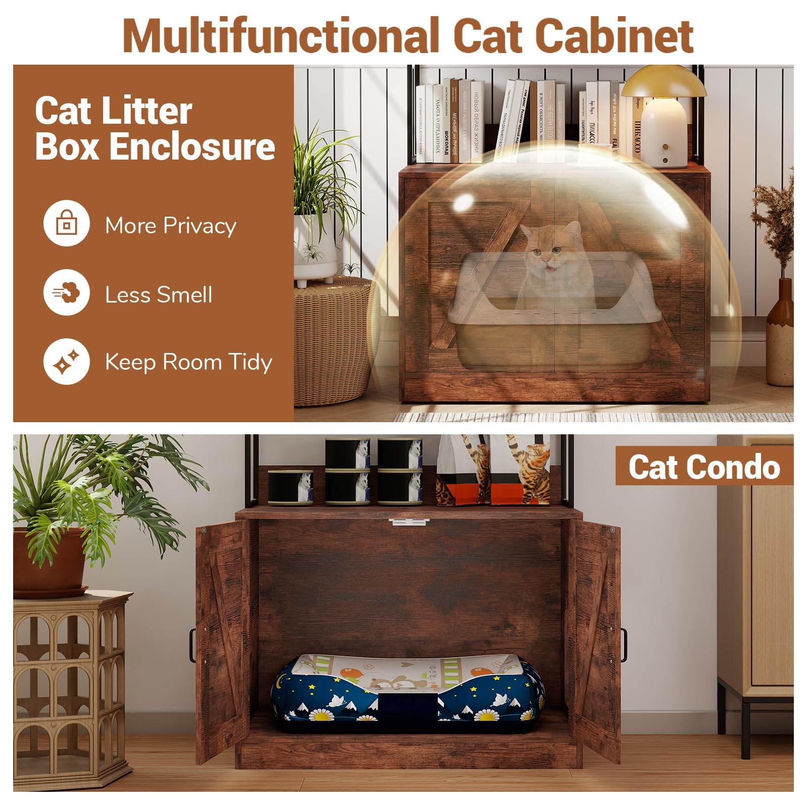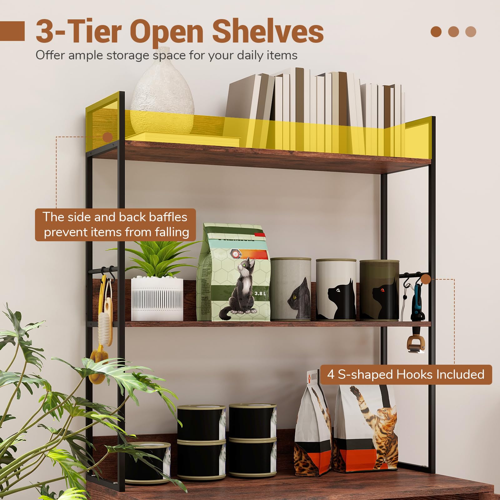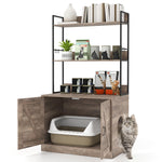 Modern Cat Litter Box Enclosure Cabinet with 3-Tier Shelves Metal Frame