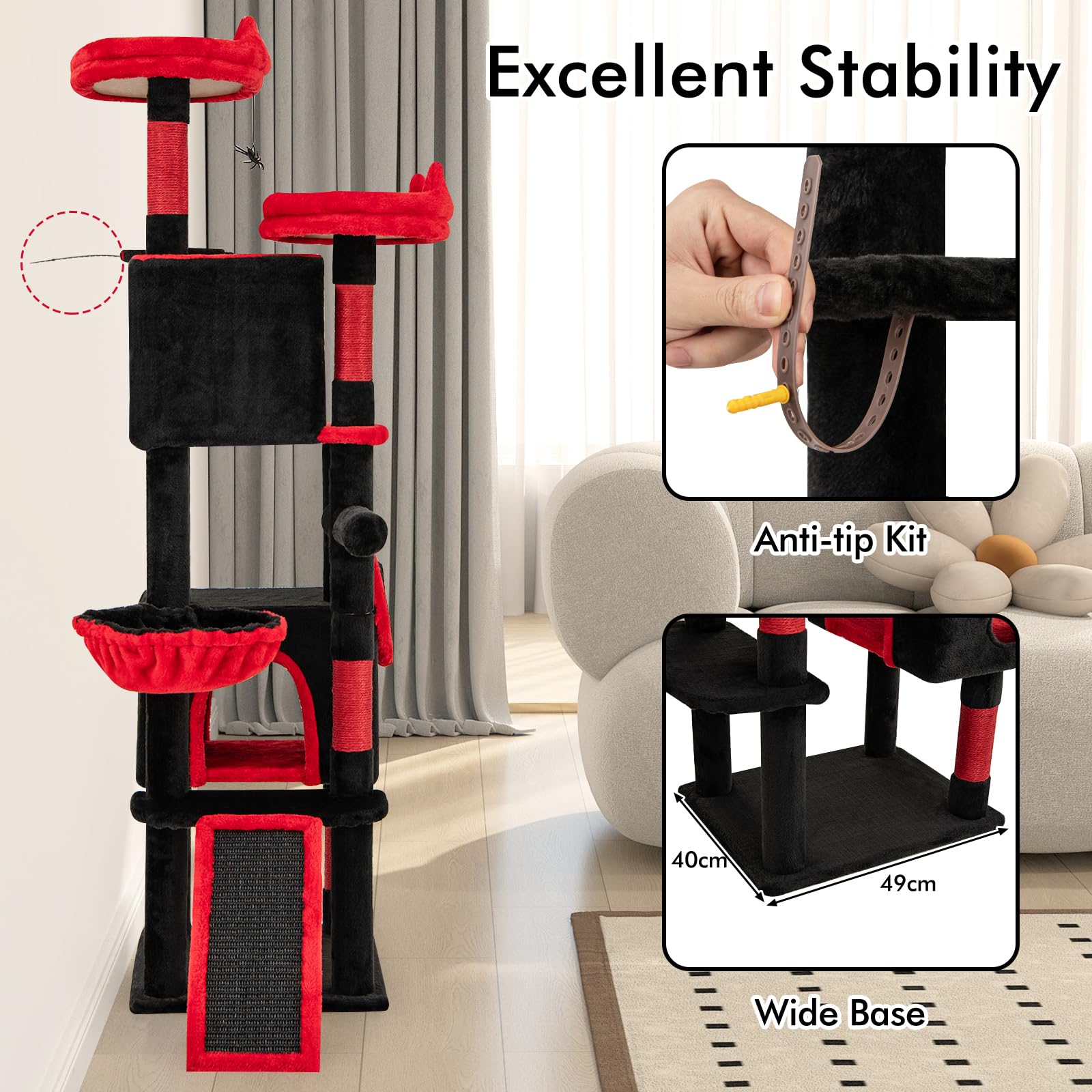 Gothic Cat Tree for Indoor Cats with 2 Cat Condos and 2 Plush Perches
