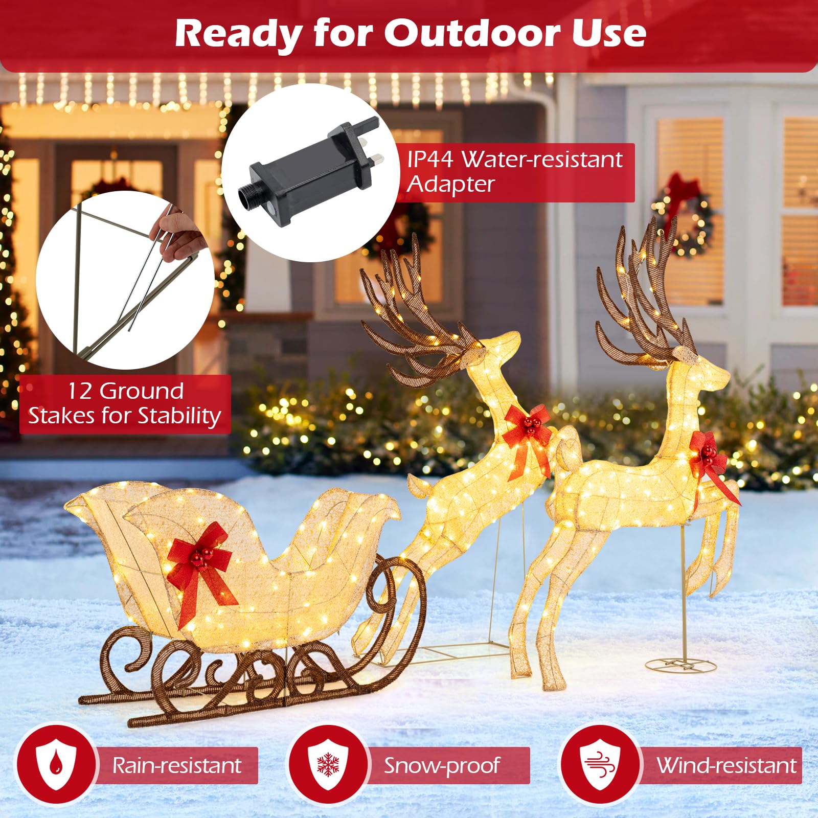 3-Piece Christmas Lighted Reindeer and Sleigh Set Lighted Deer Decoration