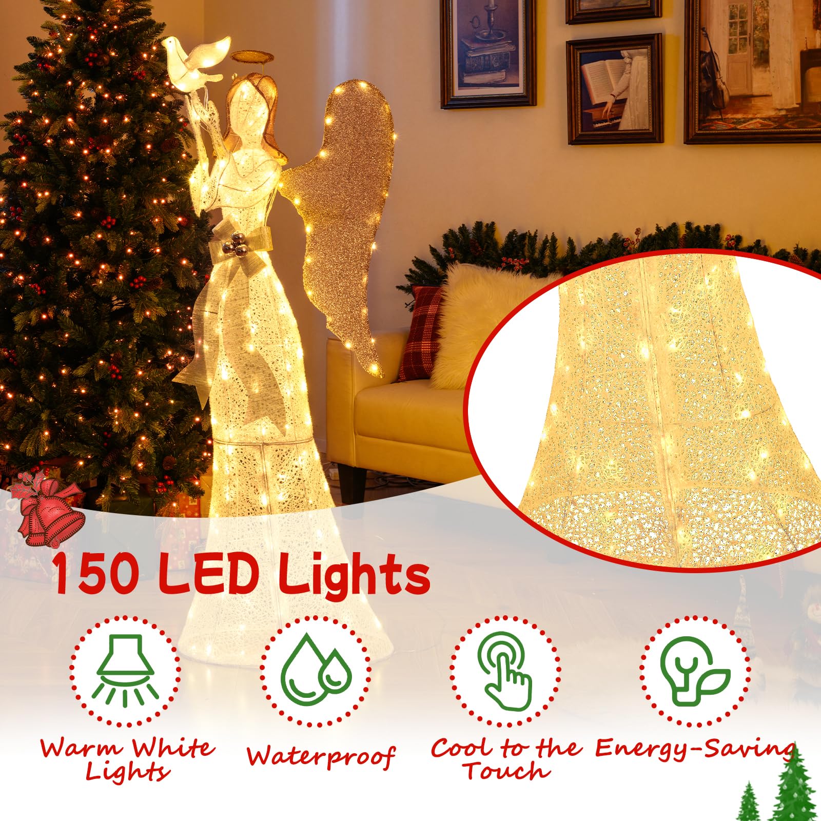 3D Lighted Angel Christmas Decoration with Pigeon and Golden Wings