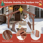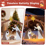 Bring the spirit of the season to your home with this timeless light-up nativity set! Illuminated by 209 warm-white LED lights, this holiday decoration casts a magical, inviting glow while remaining energy-efficient, waterproof, and safe to touch. Built on a robust metal frame, it is suitable for both indoor and outdoor use. Assembly is straightforward with 10 zip ties and 18 ground stakes included for secure placement, even on windy days. This pre-lit nativity scene enhances homes, yards, porches, or shops both day and night.