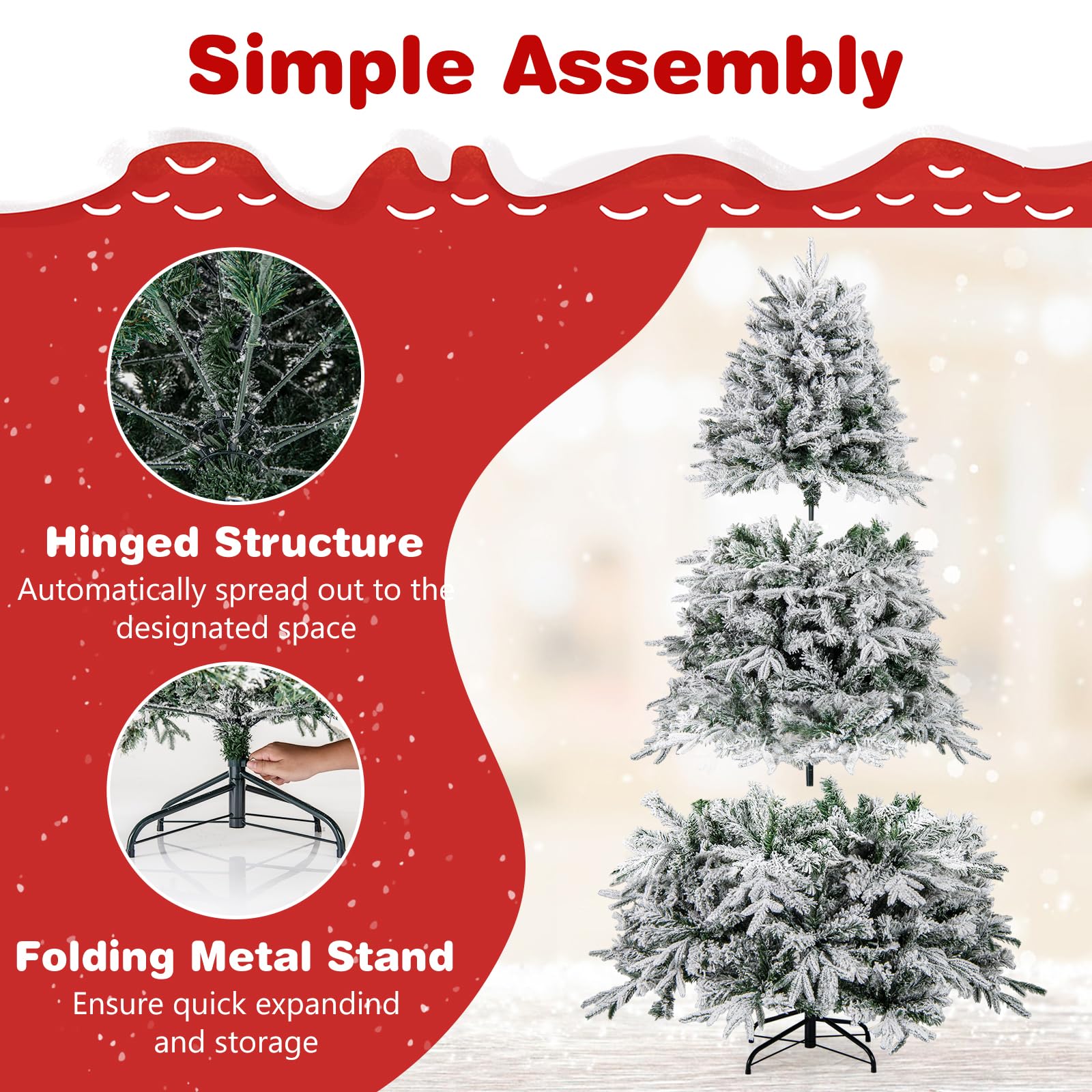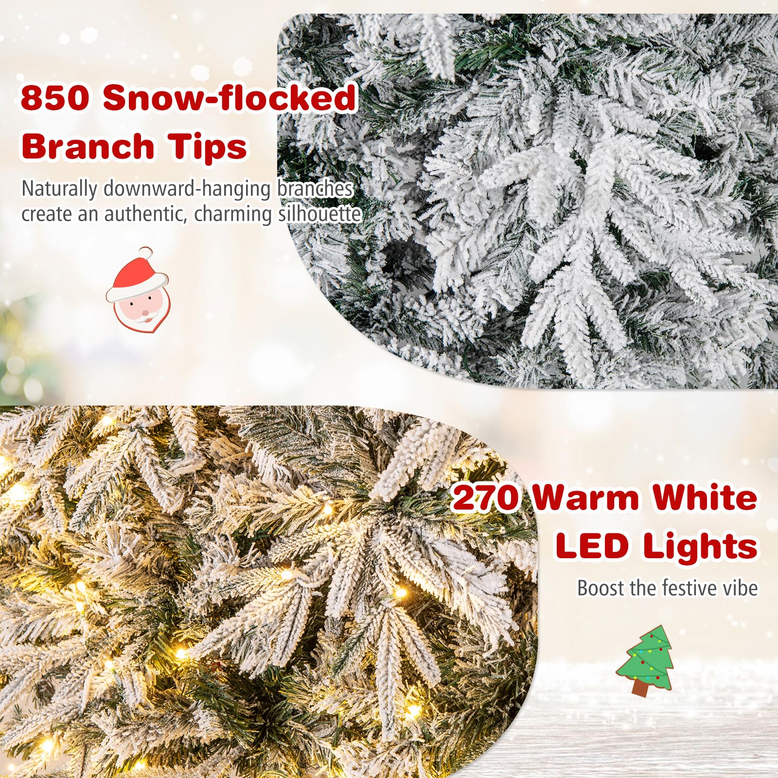180 cm Artificial Christmas Tree Pre-lit Hinged Xmas Tree with 270 Warm White LED Lights
