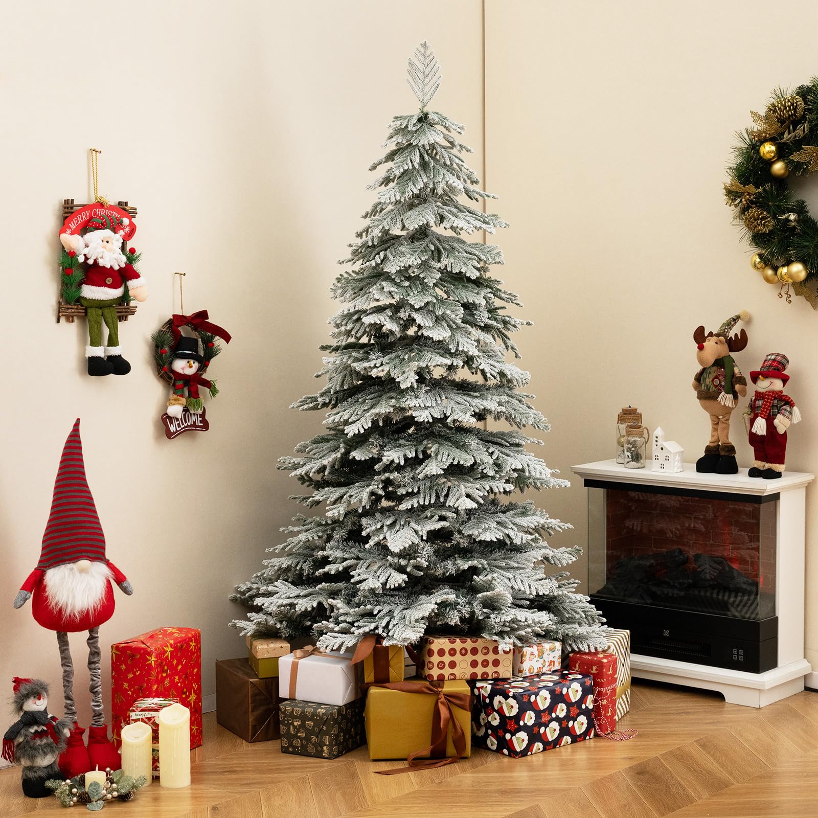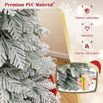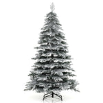 This artificial Christmas tree is a stunning addition to your holiday decoration. It boasts a luxurious and natural look with lush branch tips, and the realistic flocked branches with a simulated snow effect add a lifelike appearance, enhancing your holiday decoration. Crafted with high-quality PVC and PE materials, the leaves are flame-retardant and odorless, ensuring safe use. The faux foliage is fade-resistant and built to last, requiring no maintenance and keeping evergreen. Supported by a stable crossed metal base, the tree stands tall and secure, with anti-slip footpads to protect your floor. It can be folded into a flat size for easy storage when not in use. This tree is perfect for your living room or foyer and is also ideal for commercial settings like malls, offices, or event venues.
