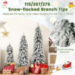 Embrace the magic of a winter wonderland with this trio of artificial holiday trees in 3 ft, 4 ft, and 5 ft sizes - perfect for decorating living spaces, entryways, or offices. This set includes 597 flocked branch tips, creating a lush, snow-kissed appearance that captures winter’s charm. Moreover, the Xmas tree set features 300 colorful LED lights that are safe, energy-saving, and enduring. Crafted from 100% new PVC, these trees are fireproof, anti-fading, anti-deformation, non-allergic, and smell-free. Premium details for ensured stability include sturdy trunks and secure metal stands that keep the trees upright all season. Plus, included protective gloves make assembly and fluffing effortless. Merry Christmas!