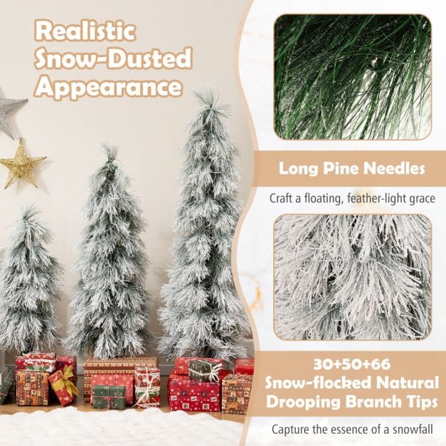 Lush Snow-Flocked Branches: Boasting 30, 50, and 66 beautifully flocked branch tips, the Christmas tree set offers a full and realistic snow-pressed appearance. This set ensures your decorations capture all the wonder and coziness of the festive season.