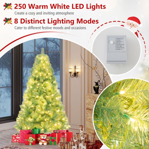6 FT Artificial Xmas Tree with 688 Branch Tips and 250 Warm White LED Lights