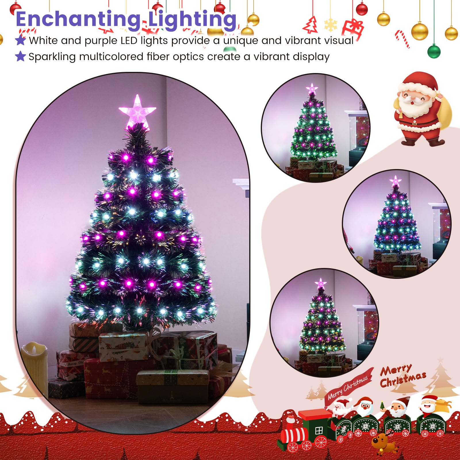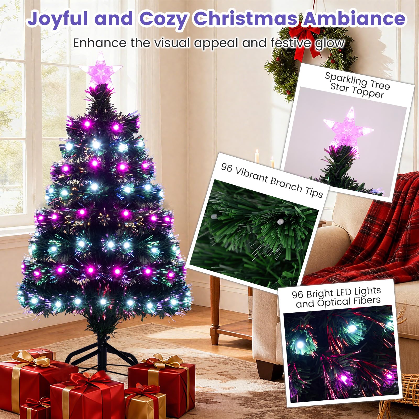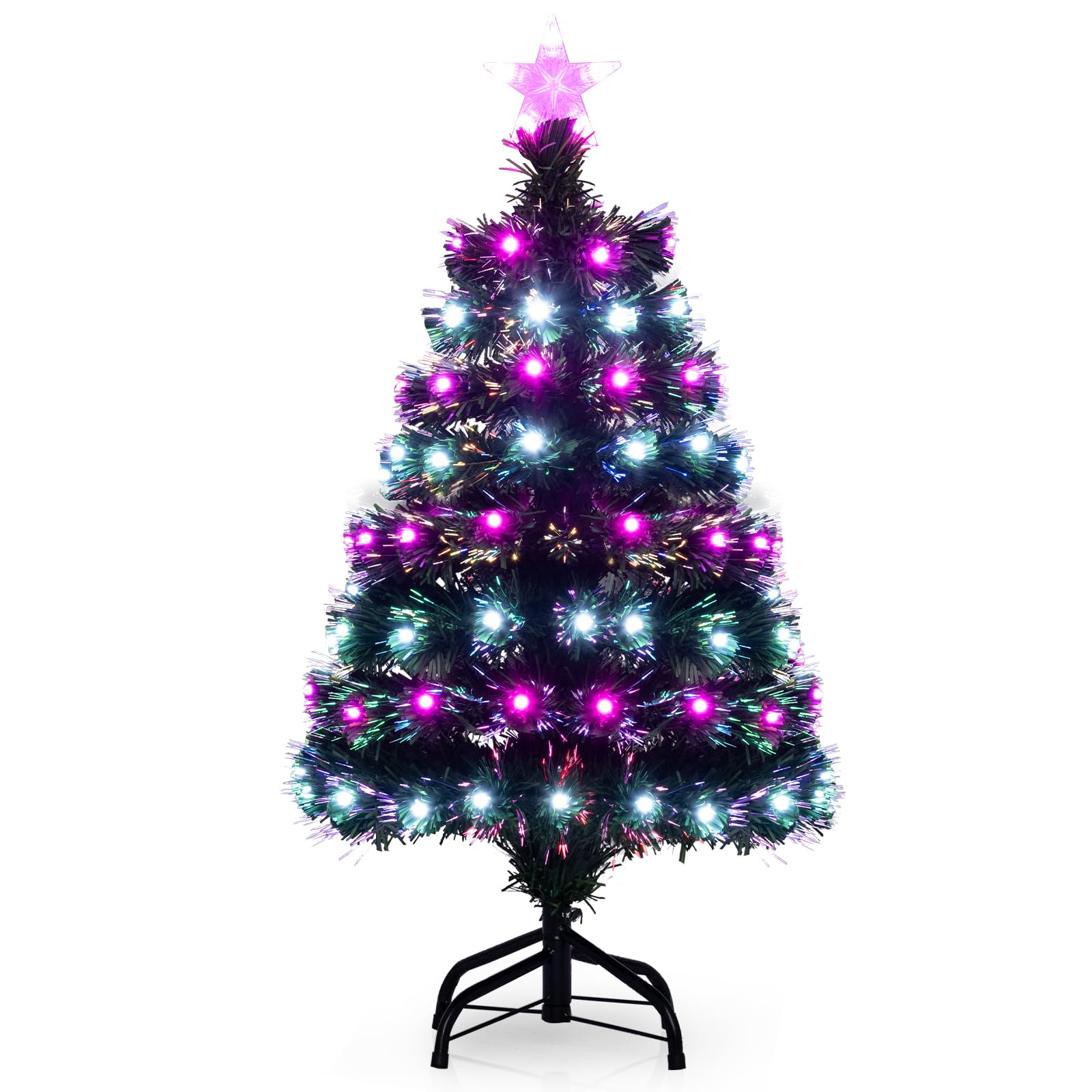 93 CM Pre-Lit Artificial Christmas Tree Xmas Tree with Multicolored Optical Fibers