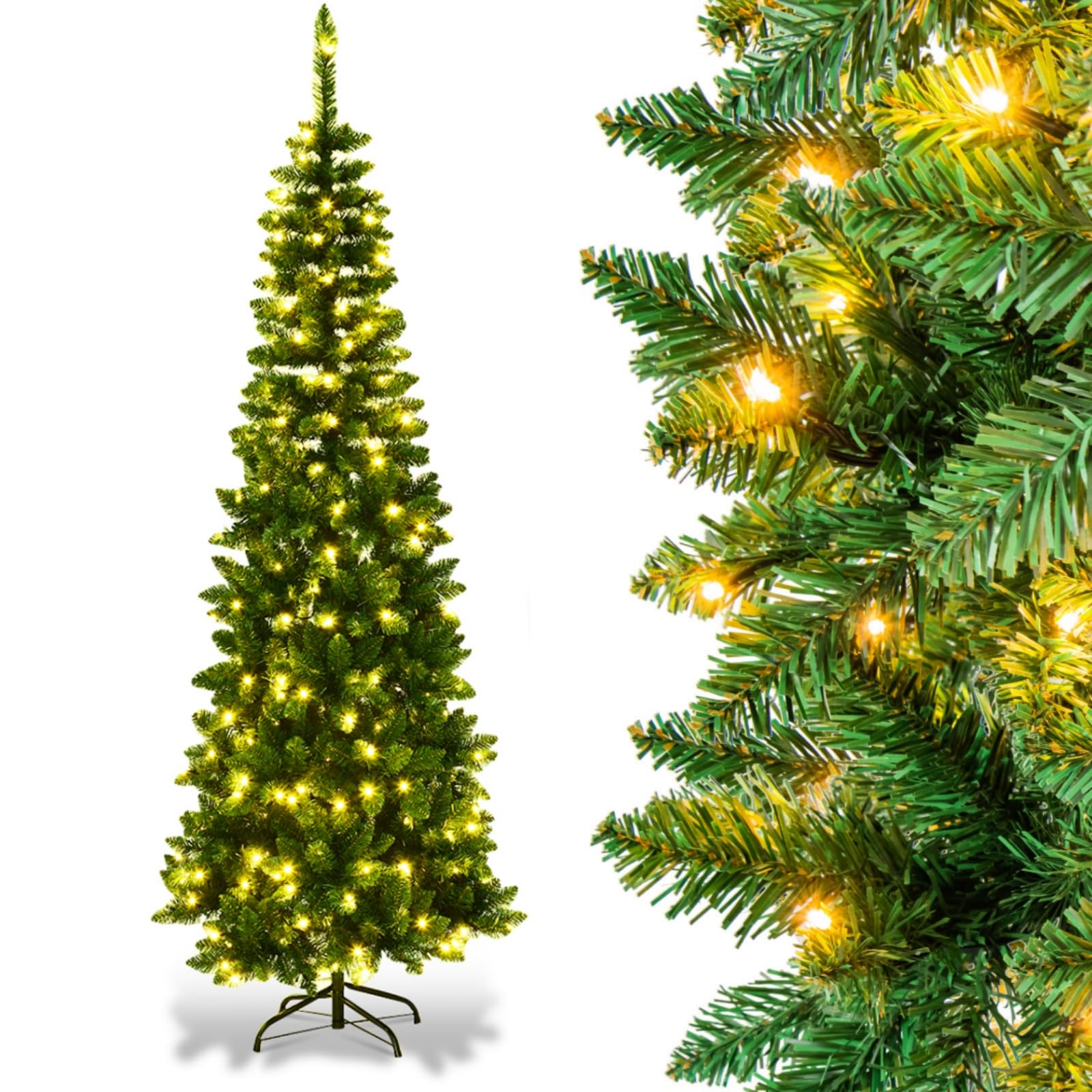 GYMAX 7.5FT Premium Hinged Artificial Pencil Tree with Warm White LED Lights
