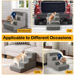 Wide Usage: The foldable dog stairs serves as a practical aid for short-legged dogs, senior pets, or those with mobility challenges. With dimensions of 60 cm x 40 cm x 40 cm (L X W X H), they are ideal for small dogs and cats of all sizes.