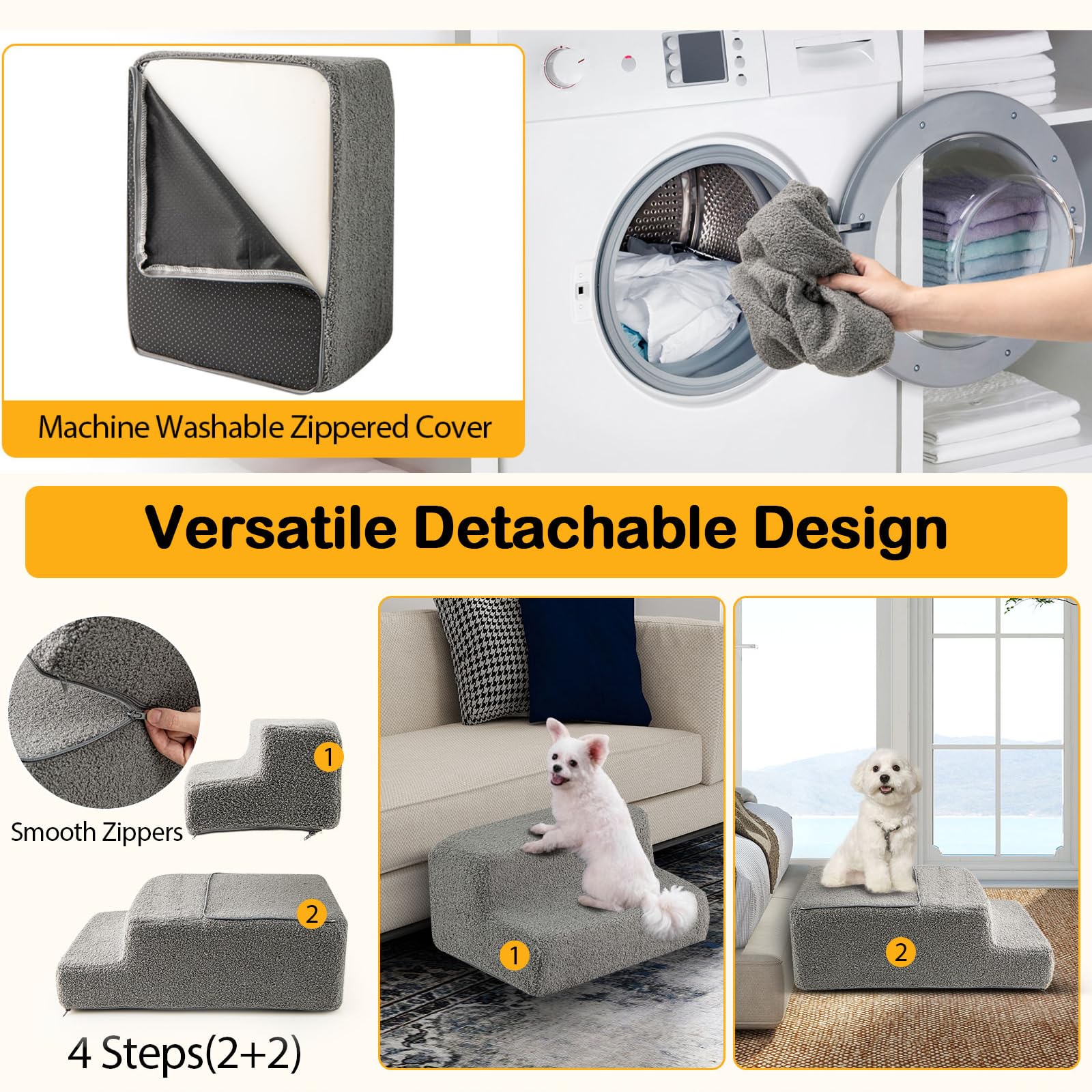 4-step Foam Dog Stairs with Non-slip Bottom and Removable Washable Cover