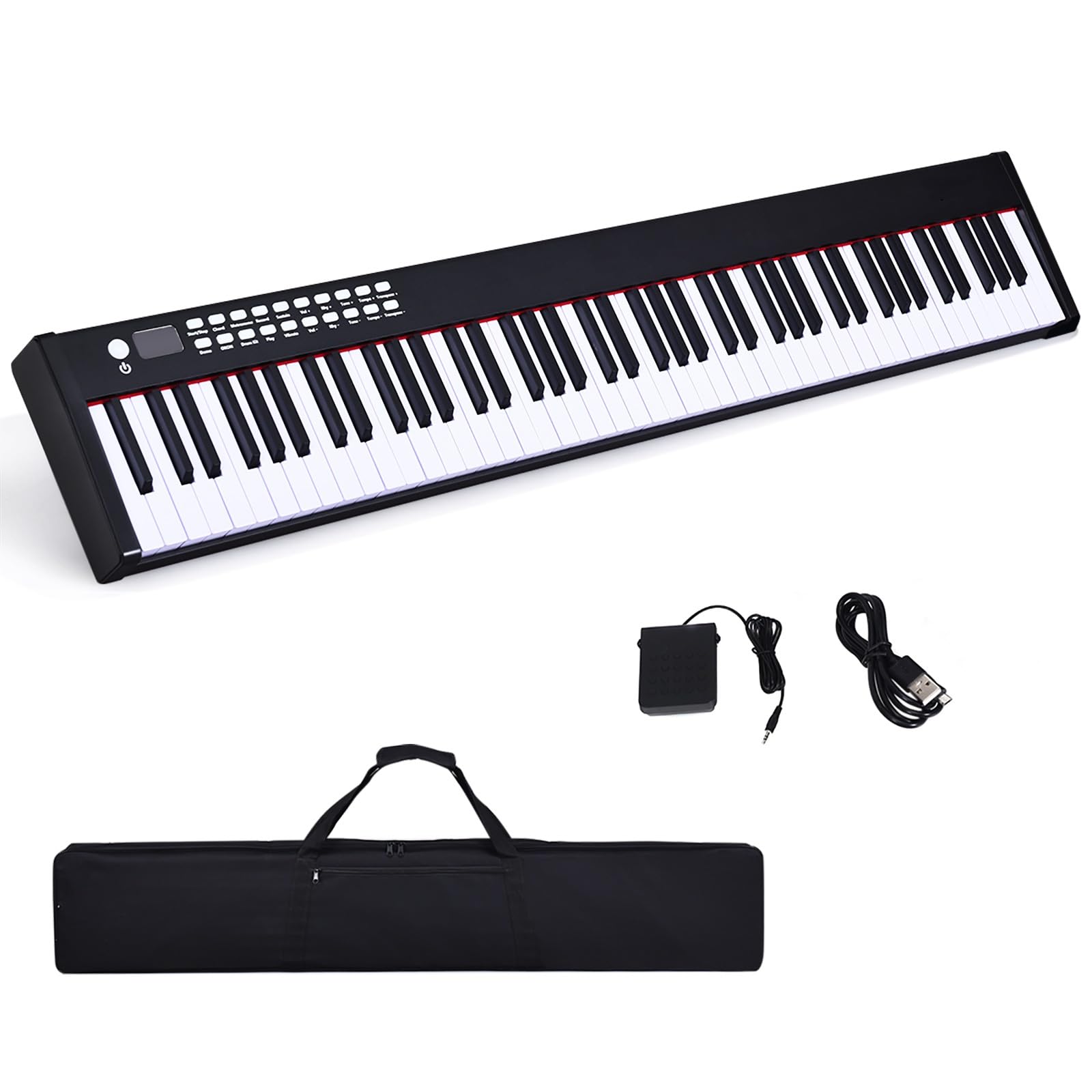 GYMAX 88 Keys Digital Piano, Portable Keyboard Piano with Bluetooth, MP3/USB/MIDI, Sustain Pedal