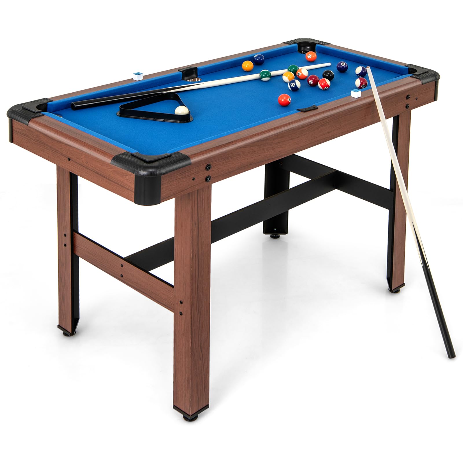 GYMAX Pool Table, 48 Inch Wooden Billiard Tables with 16 Balls, 2 Cue Sticks, 2 Chalks and Brush