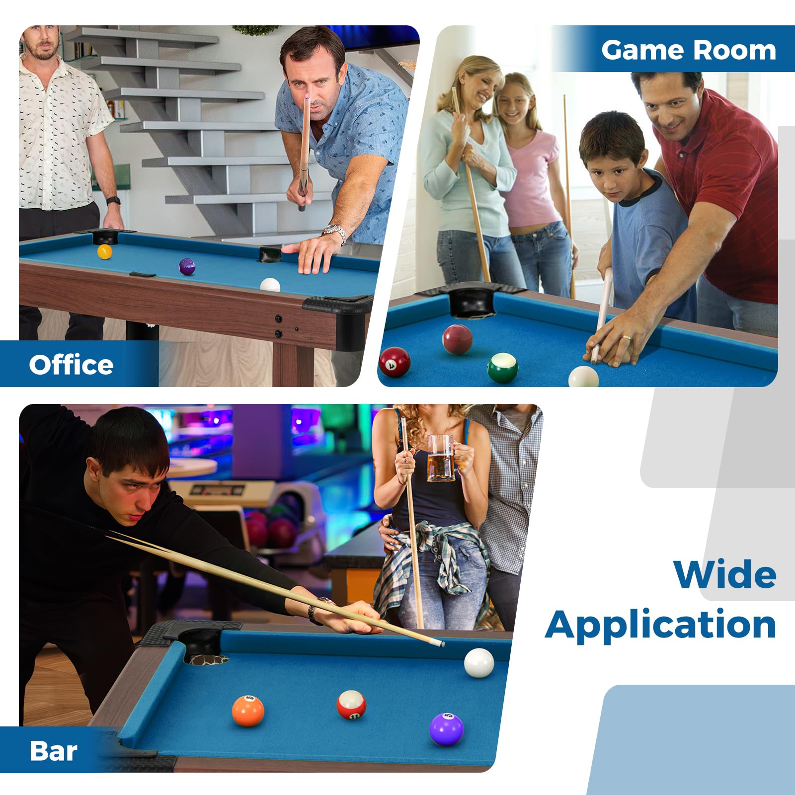 • ✔COMPLETE ACCESSORIES INCLUDED- This billiard table set comes with everything you need for a game night, including 2 cue sticks, 2 chalks, a brush, a triangle rack, and 16 billiard balls, making it perfect for family gatherings or friendly competitions.