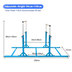 - 【Adjustable Height & Width】This parallel bars can be adjusted from 96 to 140 cm at 11 levels, which is very suitable for children of different heights and can accompany their growth. In addition, the double bars are suitable for a variety of exercises, bringing more fun to children.