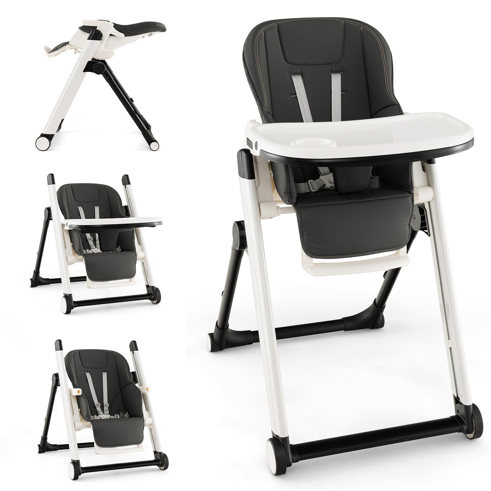 GYMAX Baby Highchair, Adjustable Foldable Infant High Chair with Removable Tray