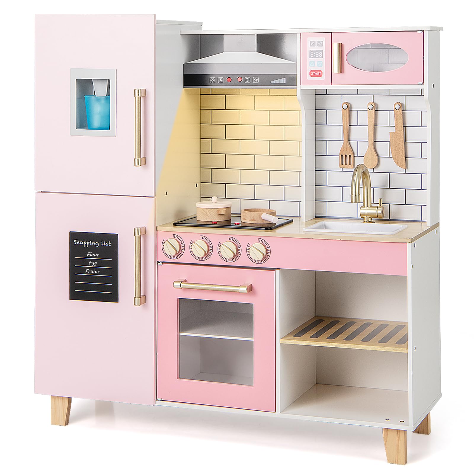 • ✔DESIGNED FOR RELIABILITY- Crafted for durability, this cooking role play toys stand securely on stable pine wood legs and comes with an anti-toppling device for added safety. Parents can feel confident for reliable and secure play.