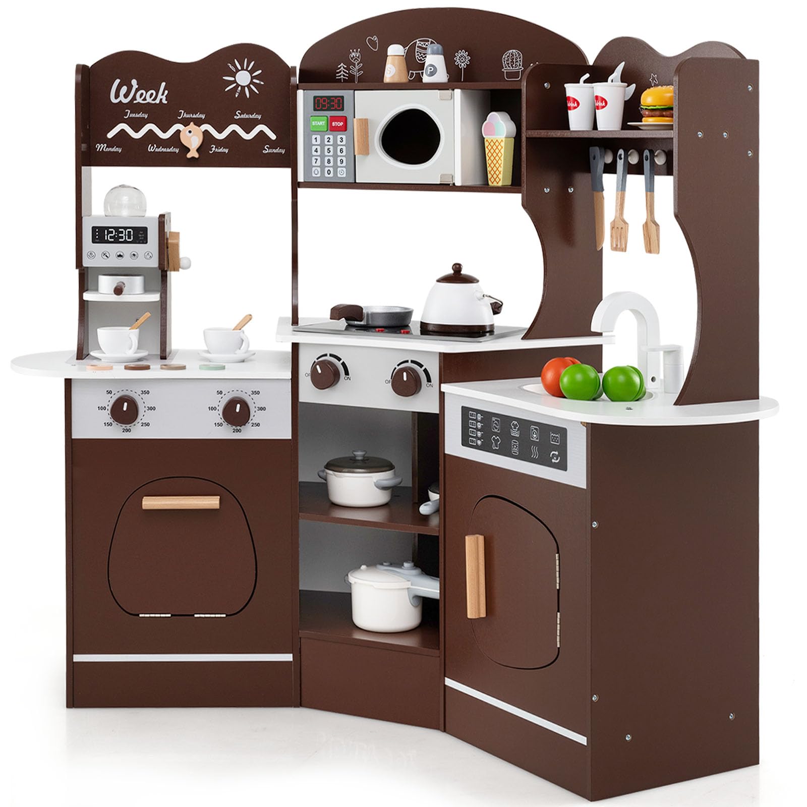 GYMAX Kids Wooden Corner Kitchen Pretend Toy Kitchen Playset for 3+ Years Old