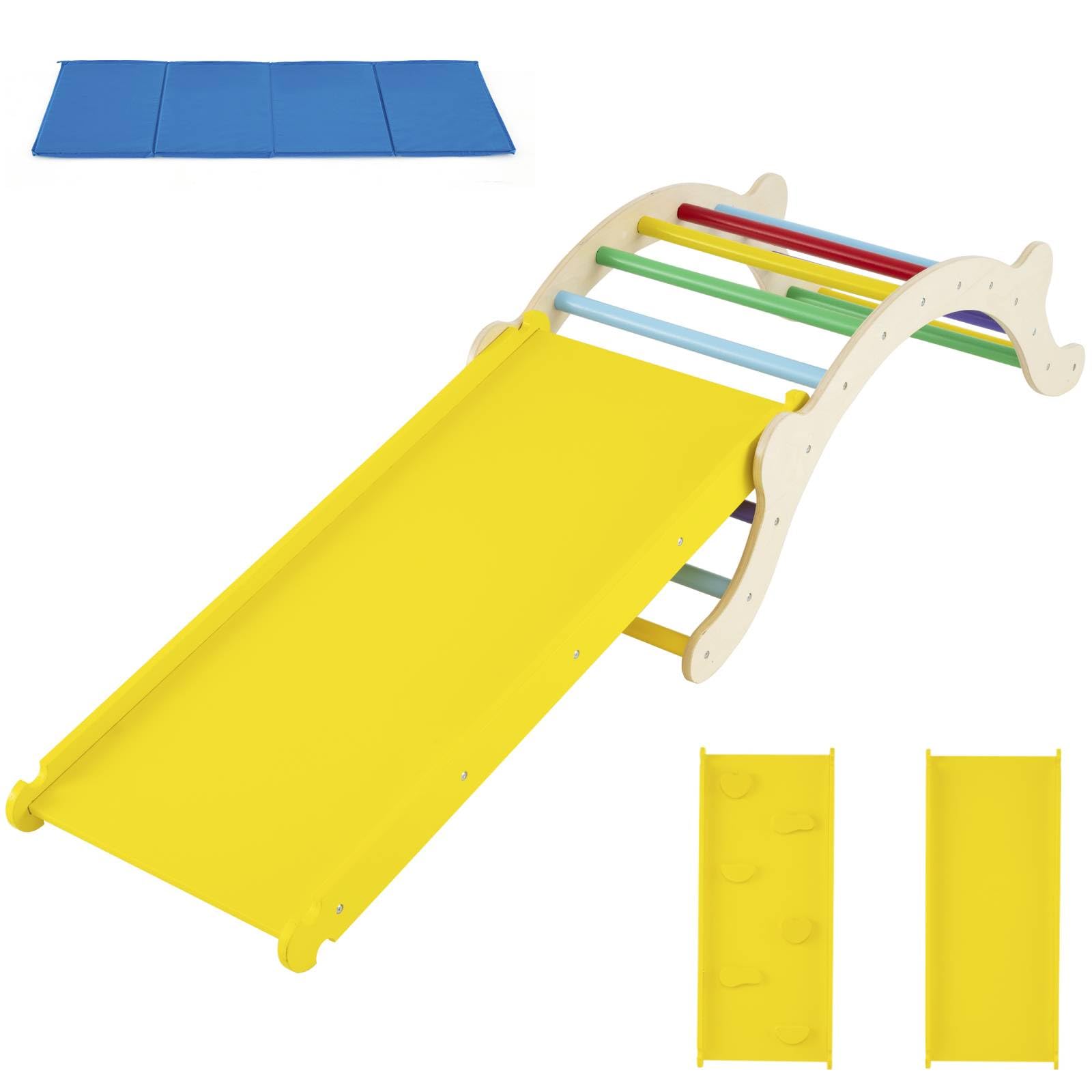 GYMAX 3 in 1 Kids Climbing Set, Indoor Climbing Arch with Reversible Ramp & Mat, Wooden Toddler Climber Frame for Playroom