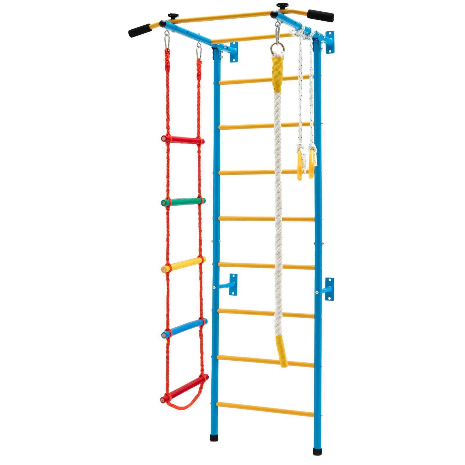- ✔5 IN 1 CLIMBING WALL SET- This is a multifunctional gymnastics wall bar that integrates wall ladder, pull-up bar, rope ladder, rope and gymnastic rings. A variety of exercise methods not only bring endless fun to children, but also increase physical fitness and improve balance ability.