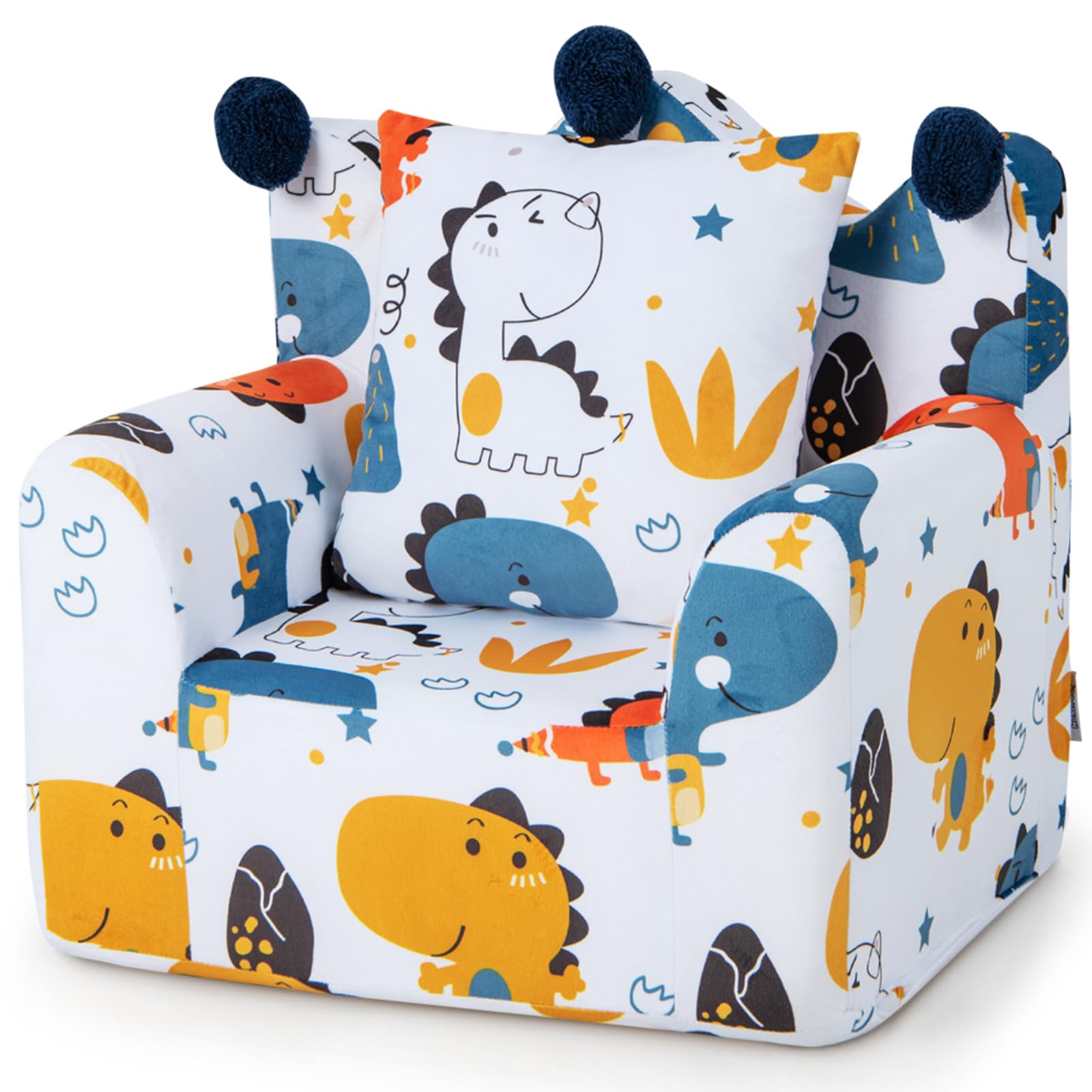 GYMAX Kids Sofa Chair, Upholstered Toddler Armchair with Padded Pillow and Washable Velvet Cover