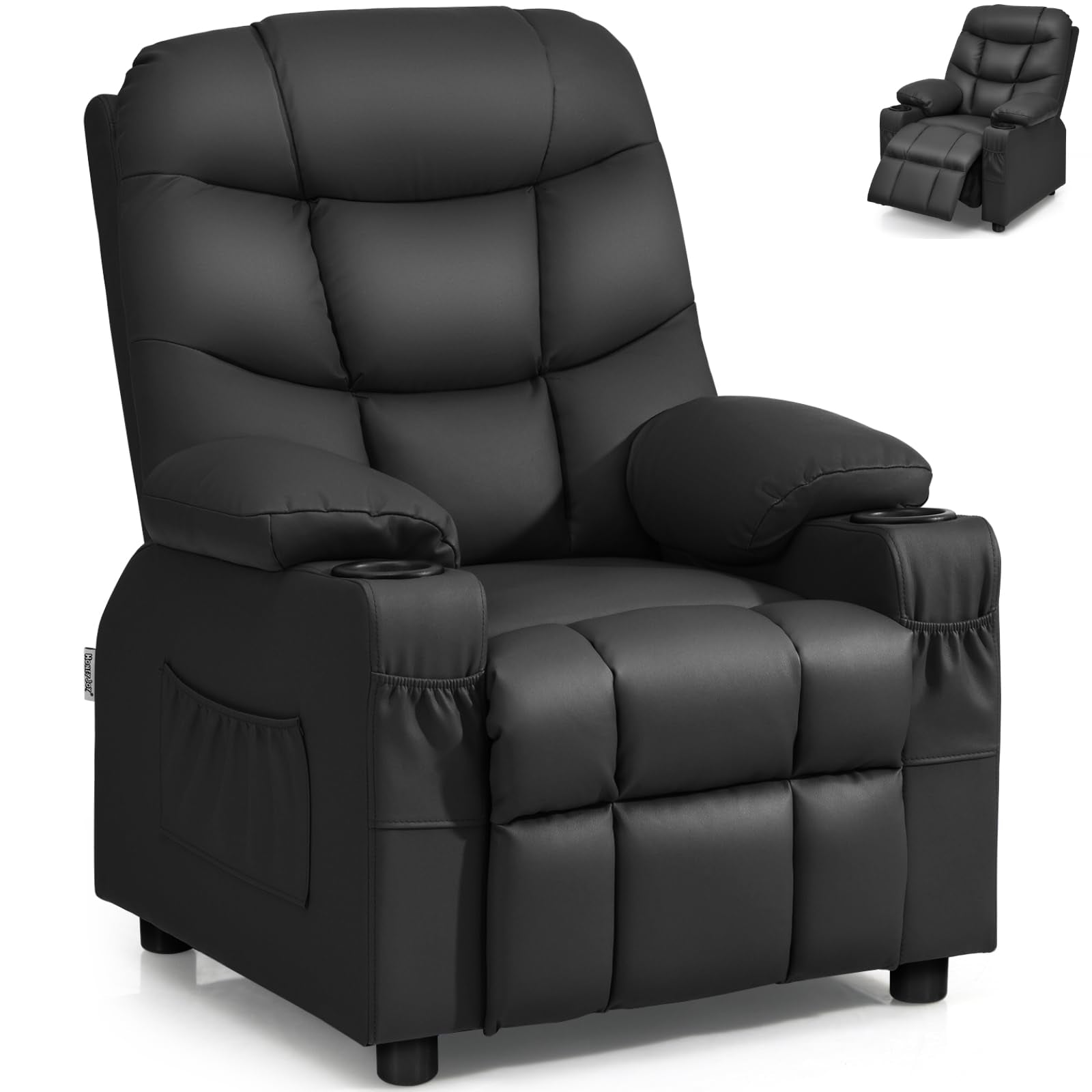 GYMAX PU Leather Children Recliner Armchair with Adjustable Backrest & Footrest