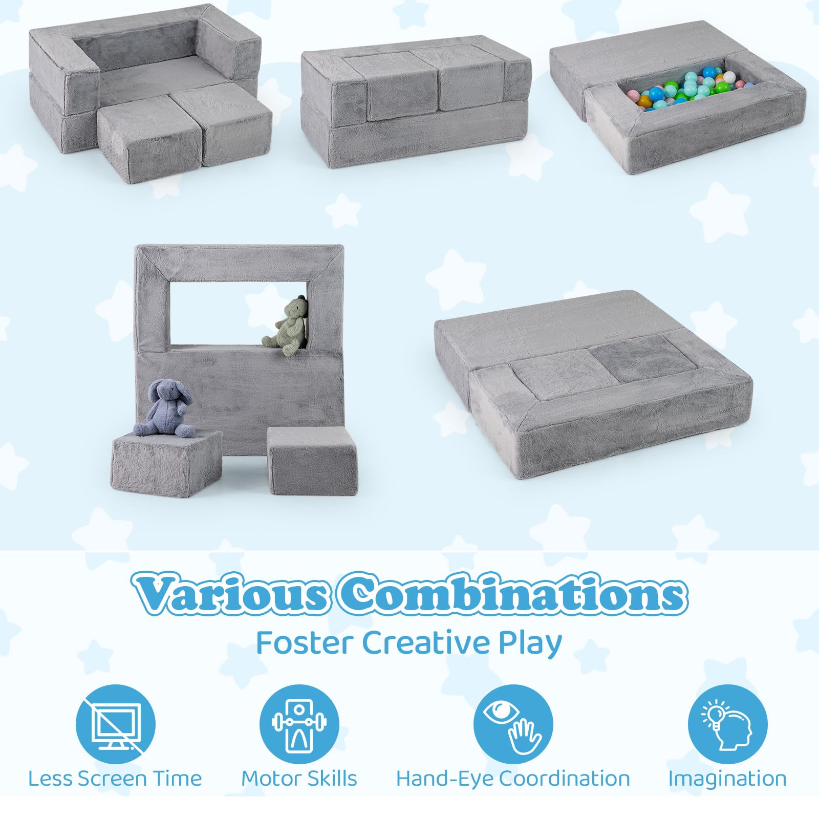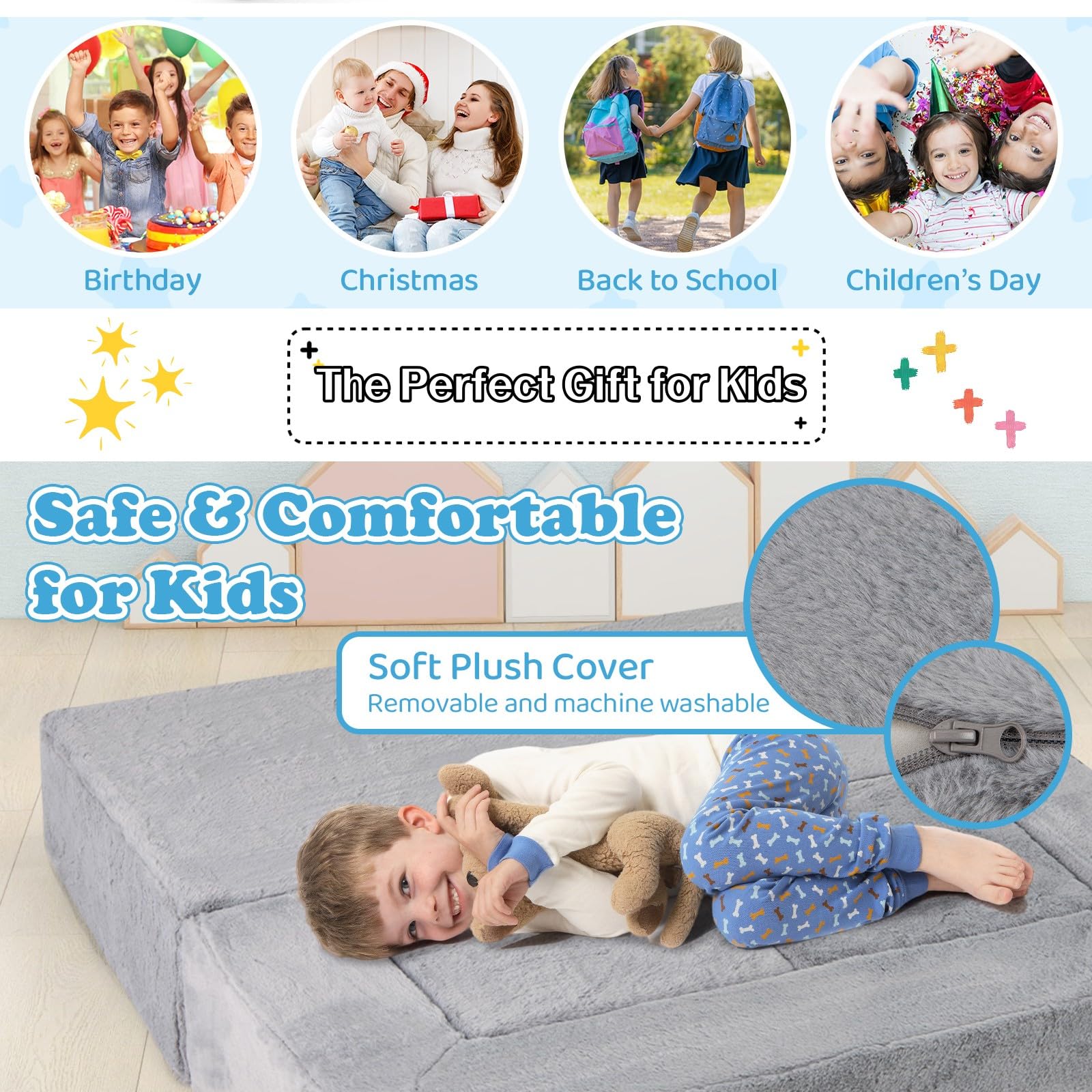 Creative Play: The convertible sofa play set helps kids develop imagination and creativity as children rearrange the pieces into different seating structures, enhancing hand-on ability, promoting physical exercise, and fostering parental-child interaction. The set is the perfect gift idea for boys and girls aged 3 and up.