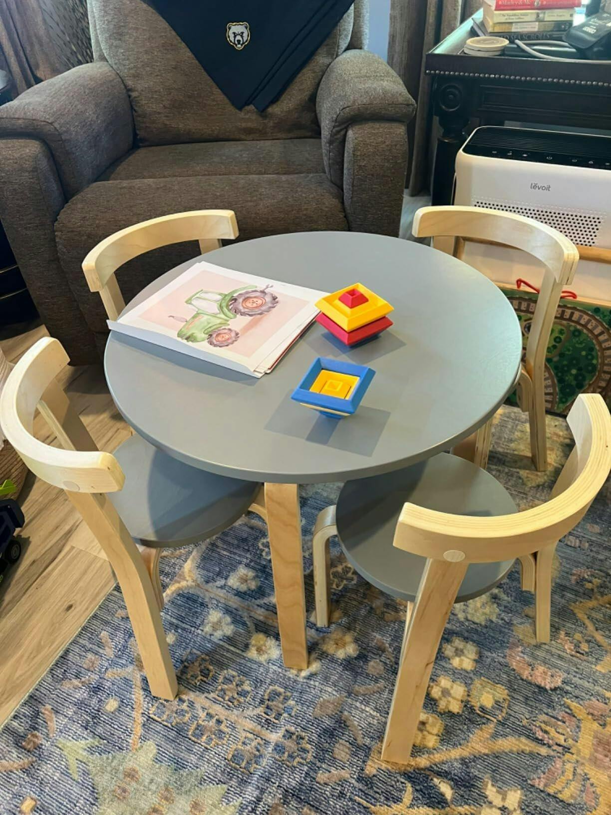 - ✔MULTIFUNCTIONAL KIDS TABLE AND CHAIRS SET- Our 5-piece kids' furniture set includes a round table and 4 chairs. It is not only a furniture set for children to play, but also a ideal place for them to have meal or study. This children table and chair set can serve 4 kids, therefore, the visiting friends can also join in the fun!