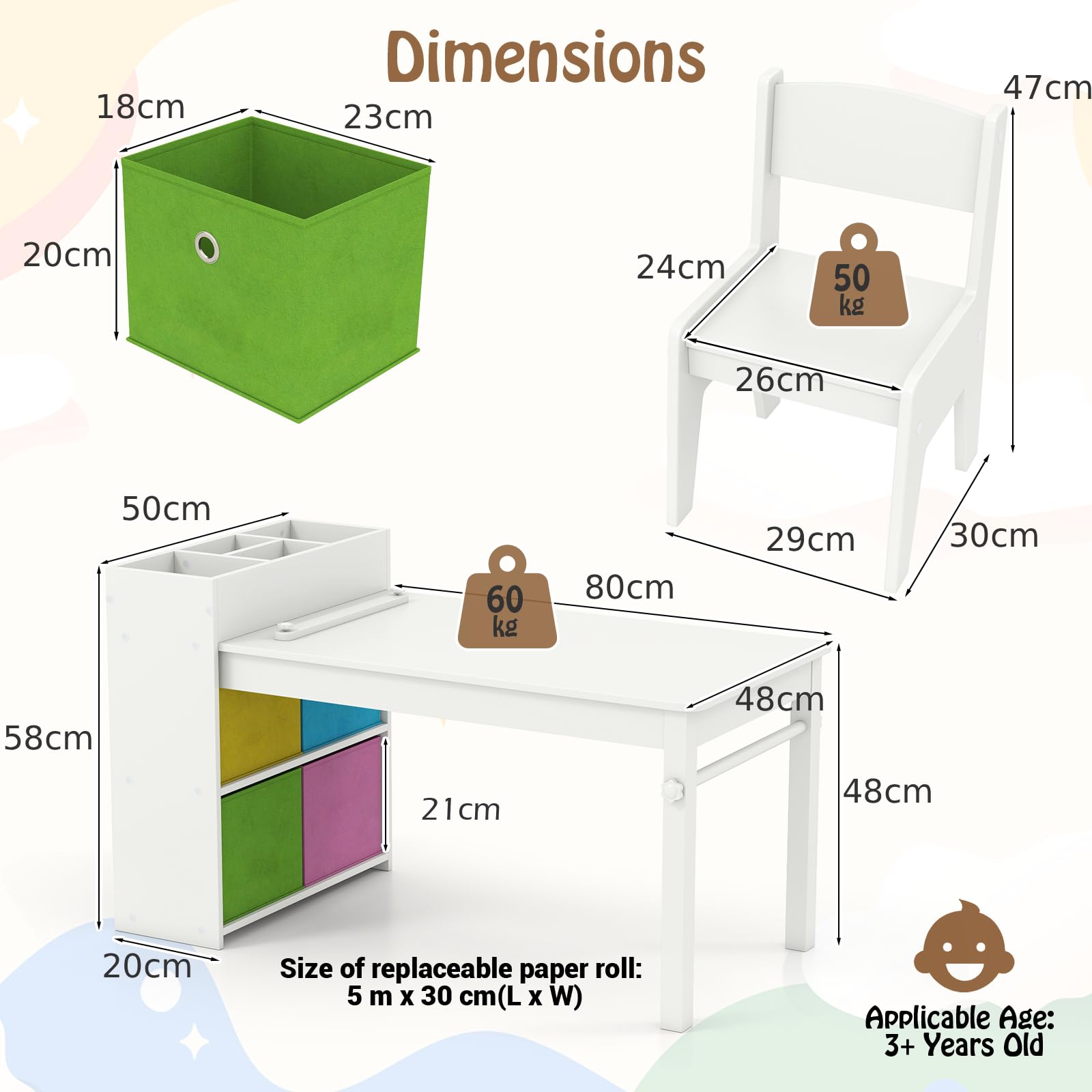 Kids Art Table and Chairs Set with Paper Roll and Storage Shelves