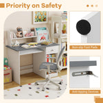 - Excellent Stability: Equipped with an anti-toppling device, the desk can be securely fix to the wall to ensure kids’ safety. Moreover, the legs are designed with non-slip foot pads that not only add stability but also won't scratch the floor.