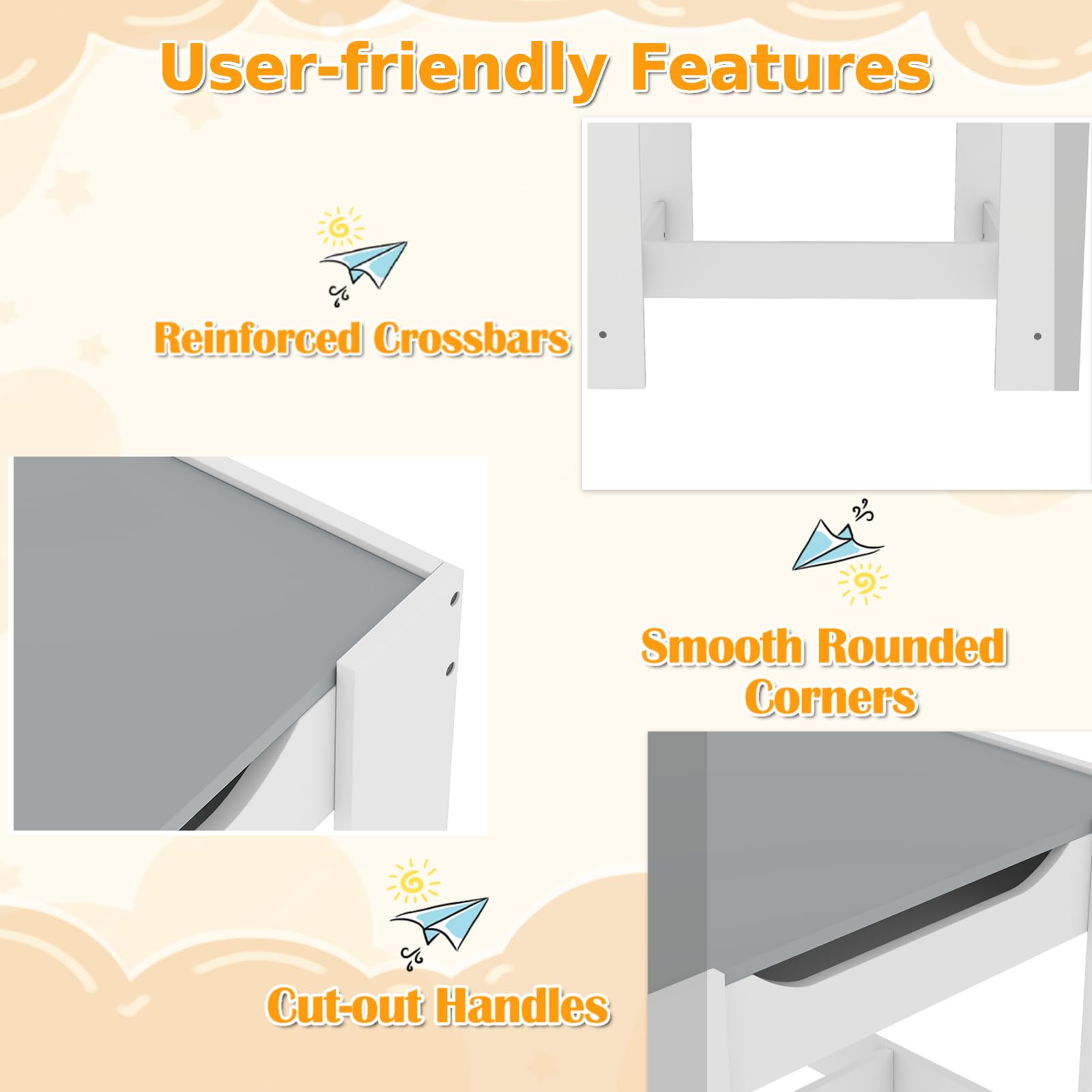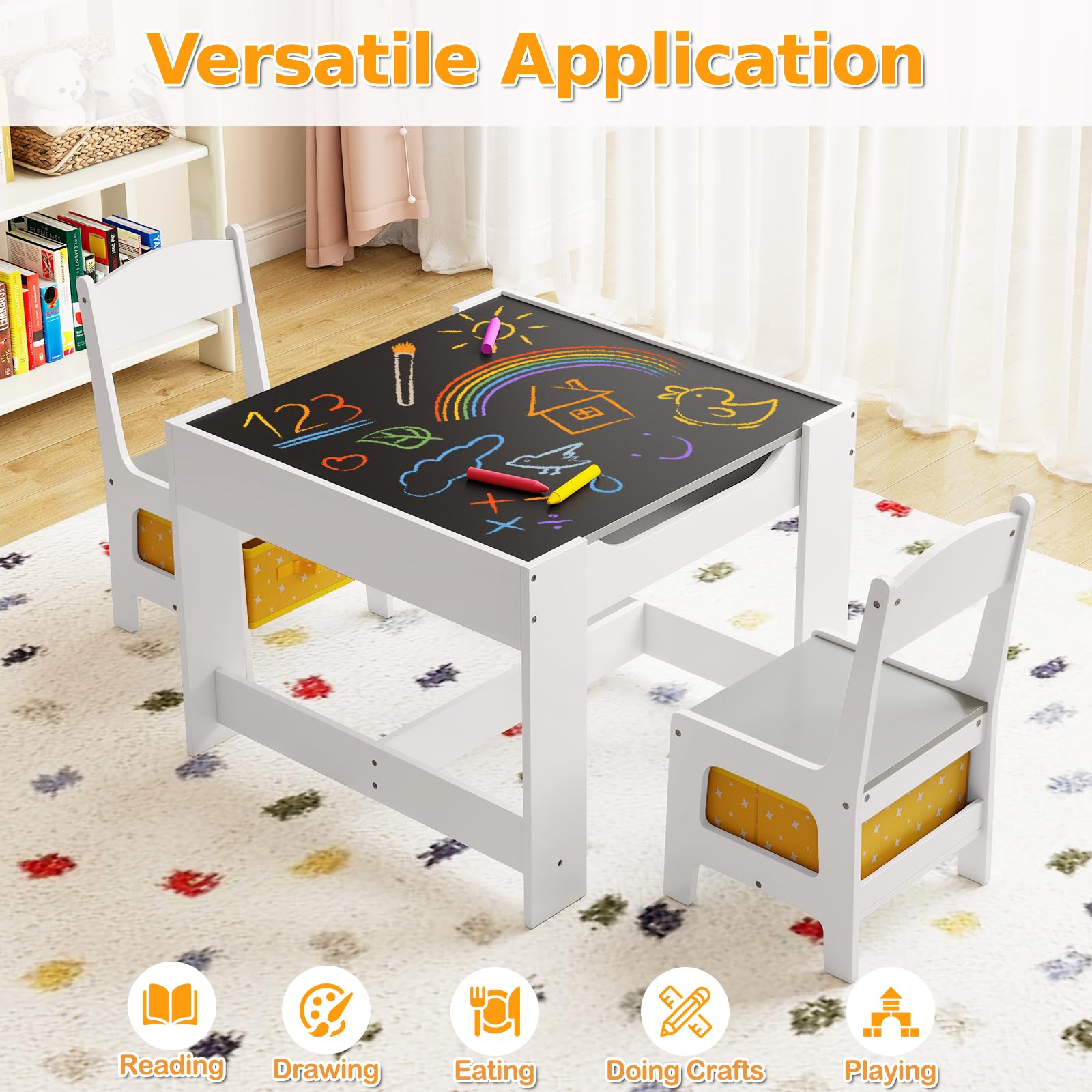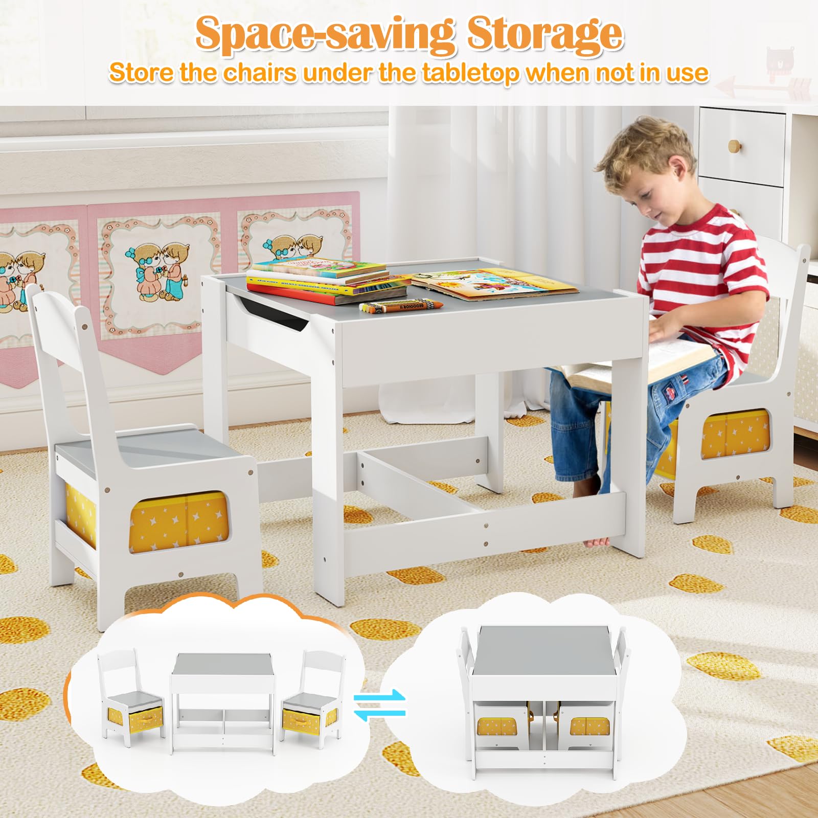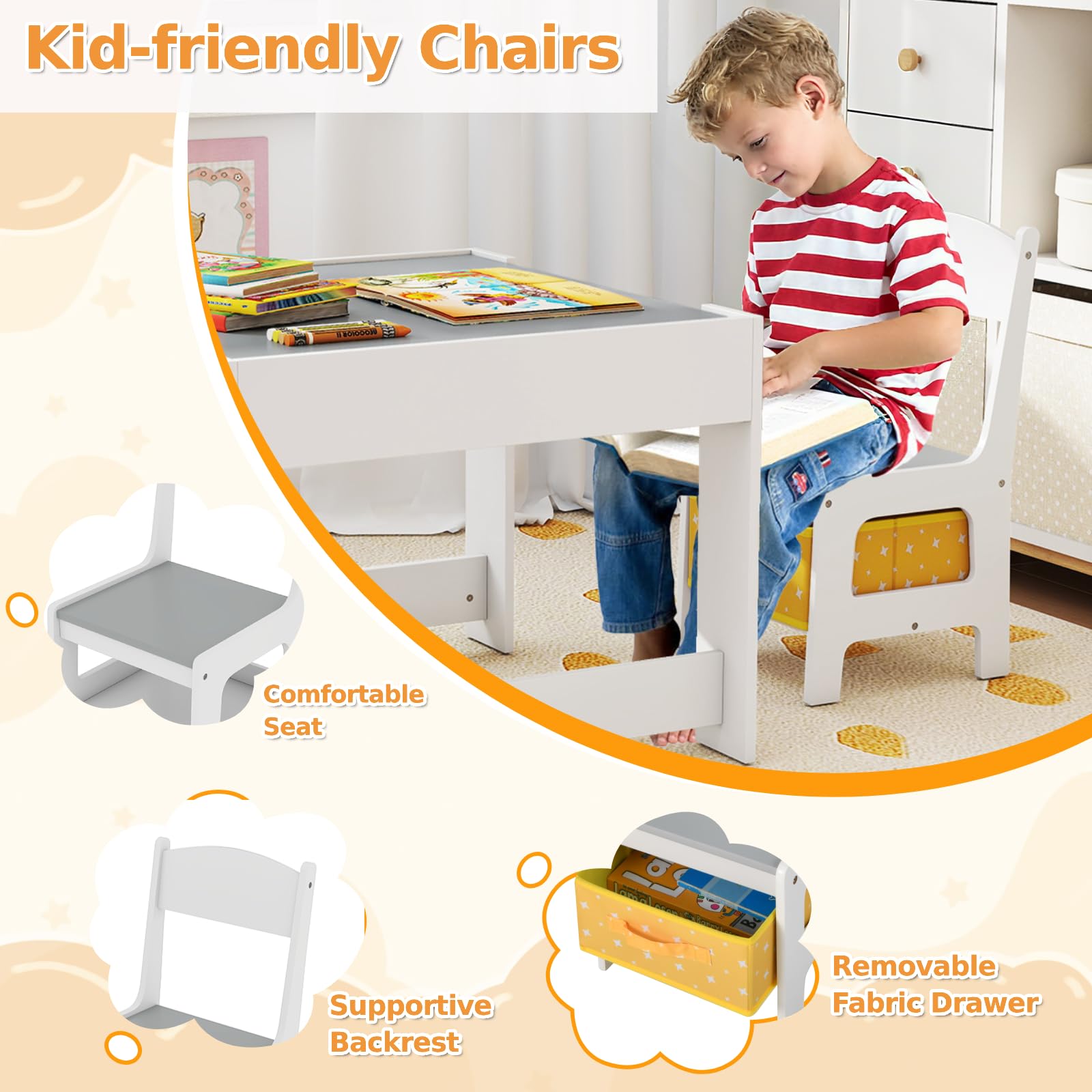 Kids Table Chair Set with Double Side Tabletop Table and Storage Box