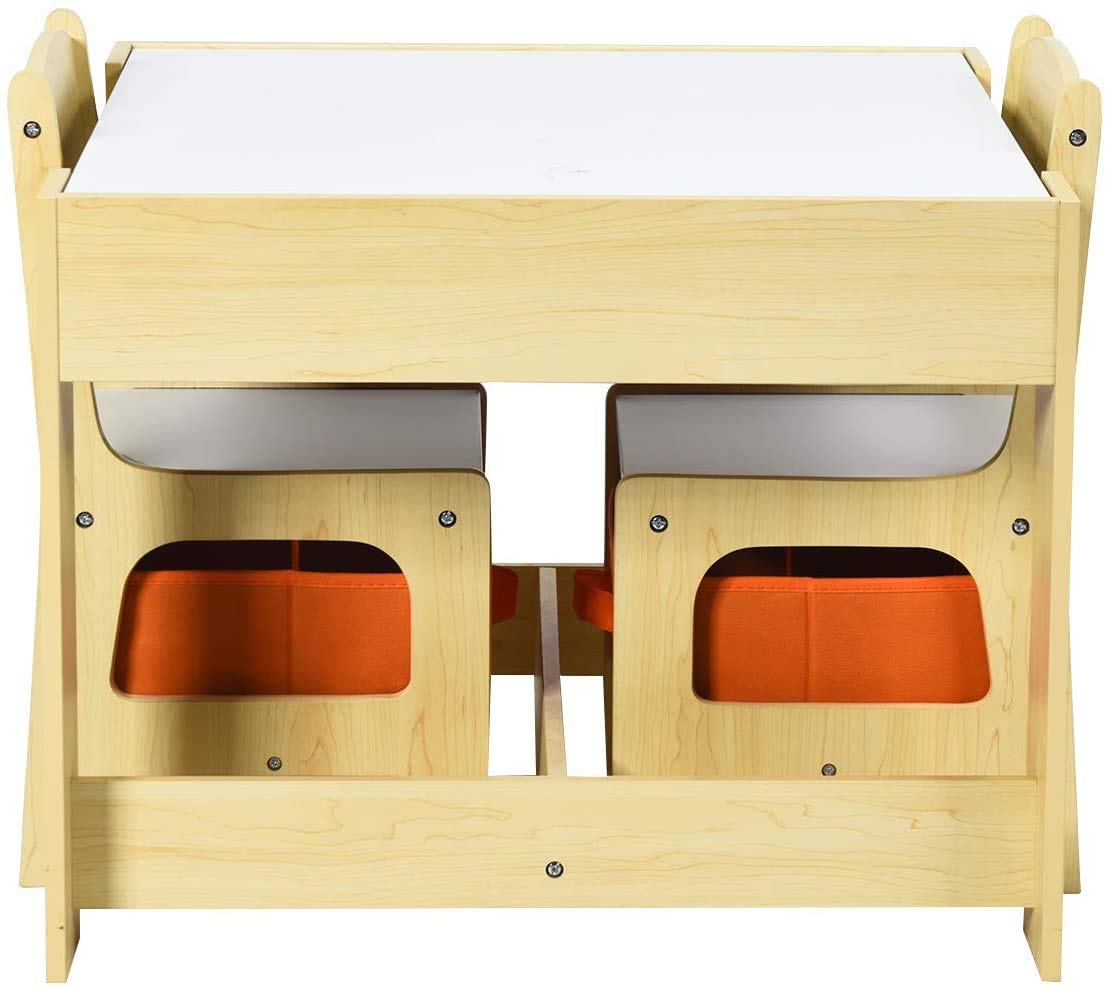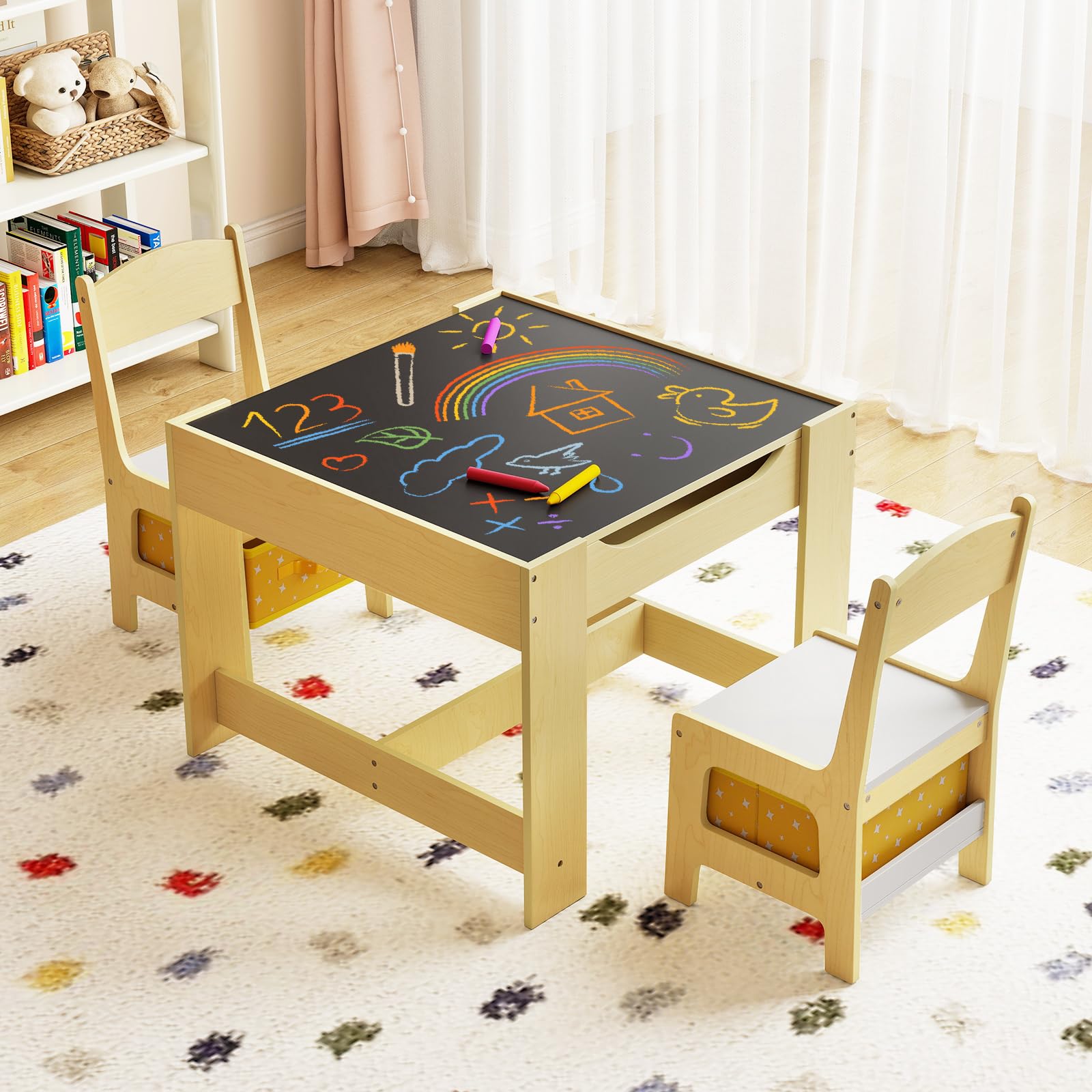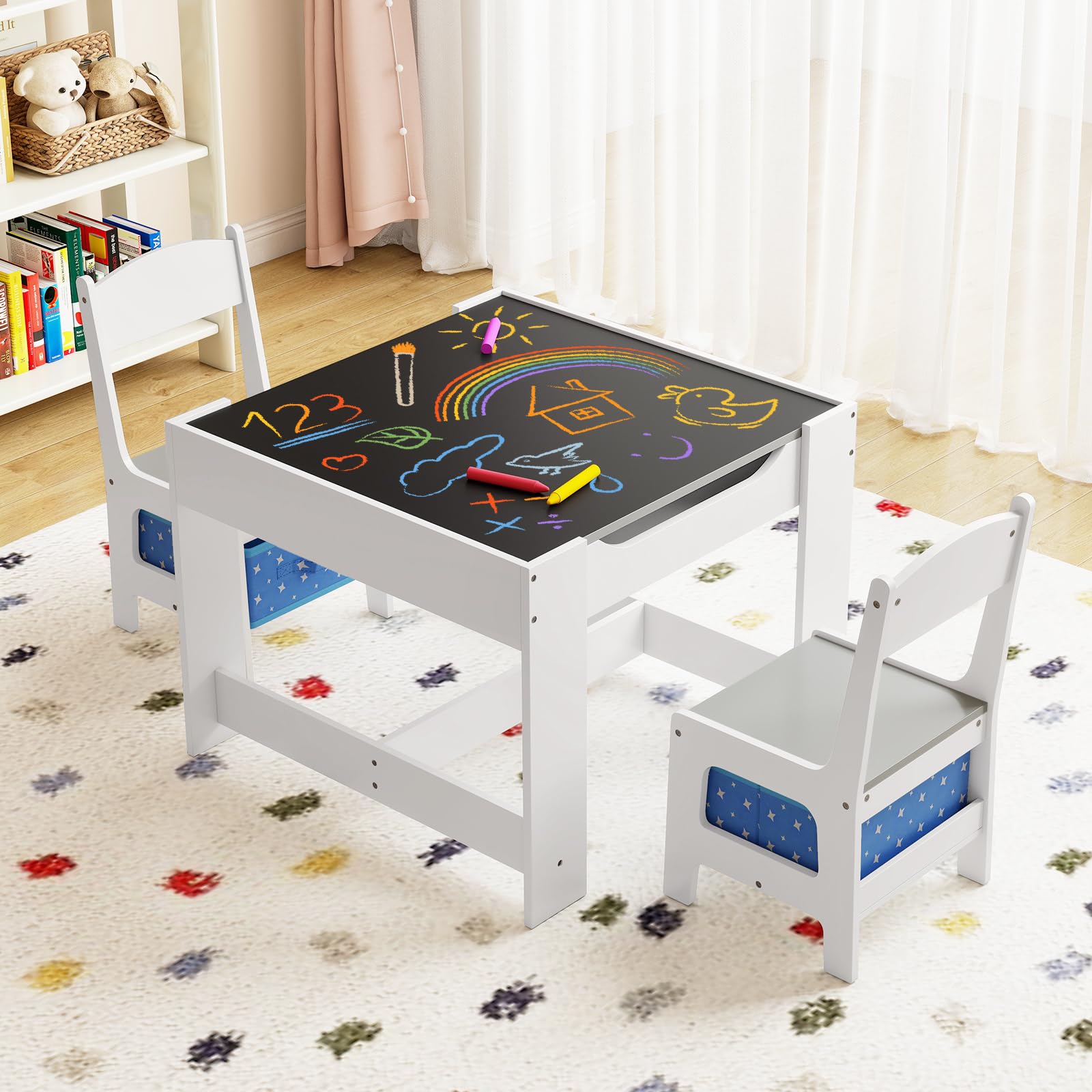 Kids Table Chair Set with Double Side Tabletop Table and Storage Box