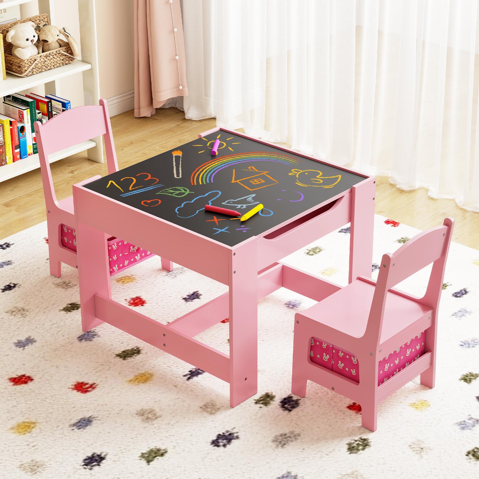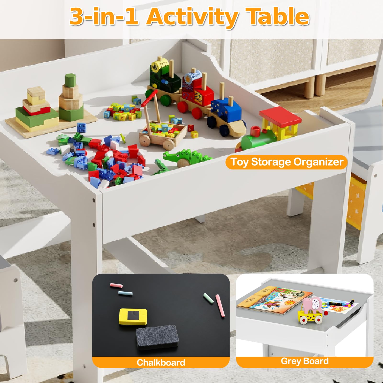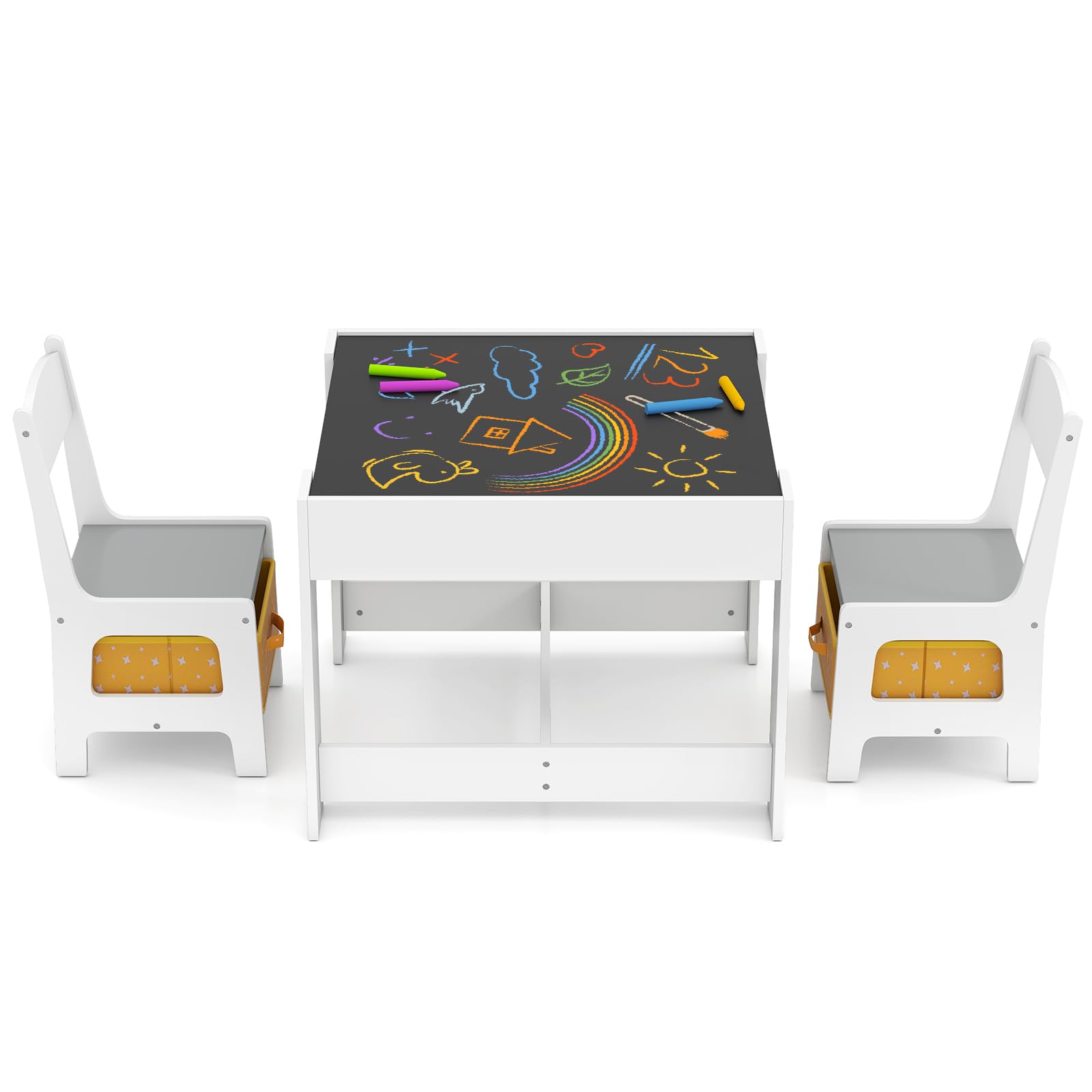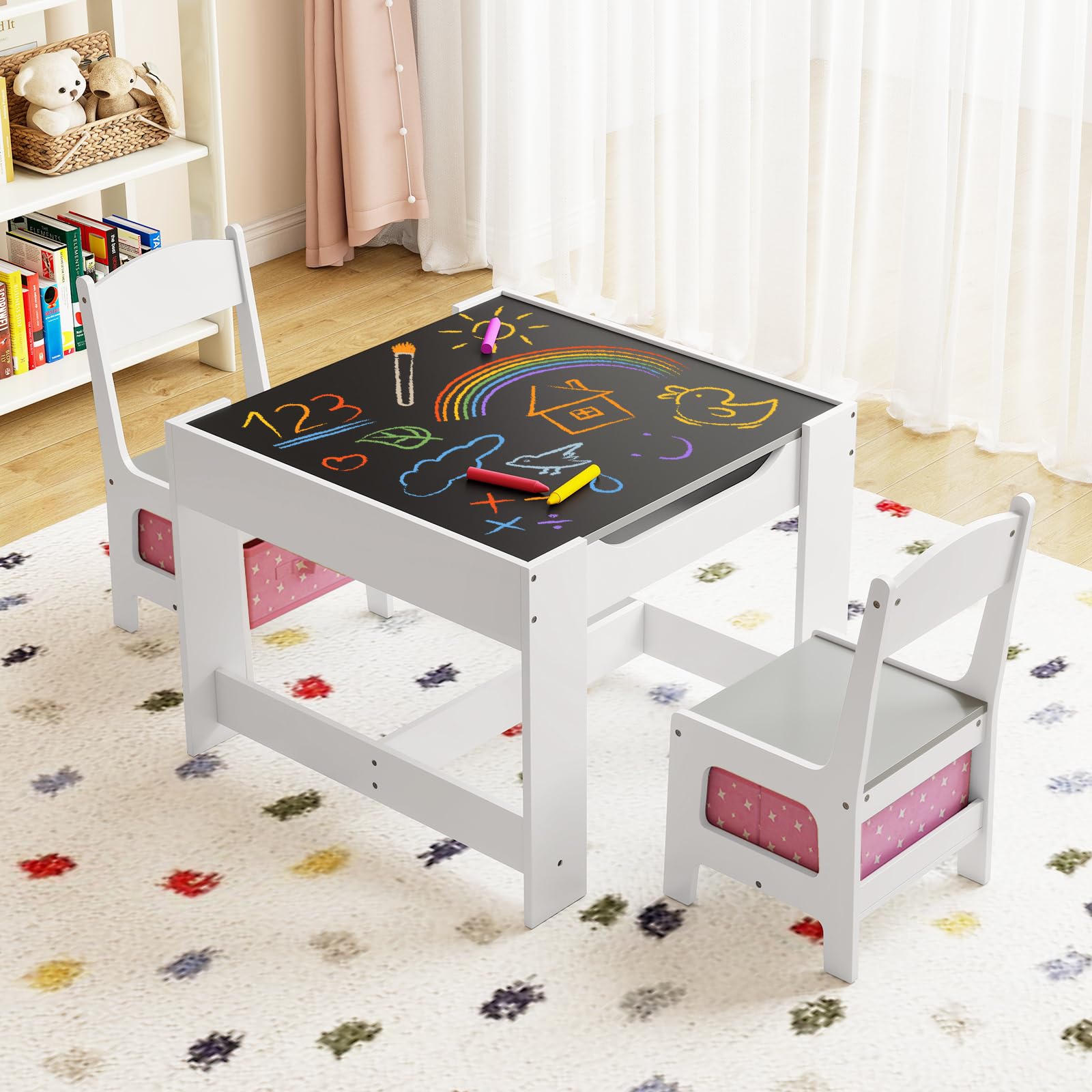 Kids Table Chair Set with Double Side Tabletop Table and Storage Box