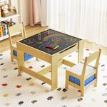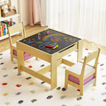 The double-sided tabletop offers a chalkboard side, allowing children to draw or colour on it and a white/grey side, suitable for playing on. Under the tabletop, there is a small space suitable for storing pens, chalks and paper etc. Each chair has a specially designed fabric drawer, suitable for storing toys, books etc., encouraging children to tidy up after play. If you are looking for a child's table and chair set like this, do not hesitate to place an order!