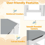 ● 2-In-1 Desktop: The double-sided tabletop offers children ample space to play on. The chalkboard side allows children to write and draw with coloured chalks whilst the white/grey side provides ample space to play games, eat or draw on.