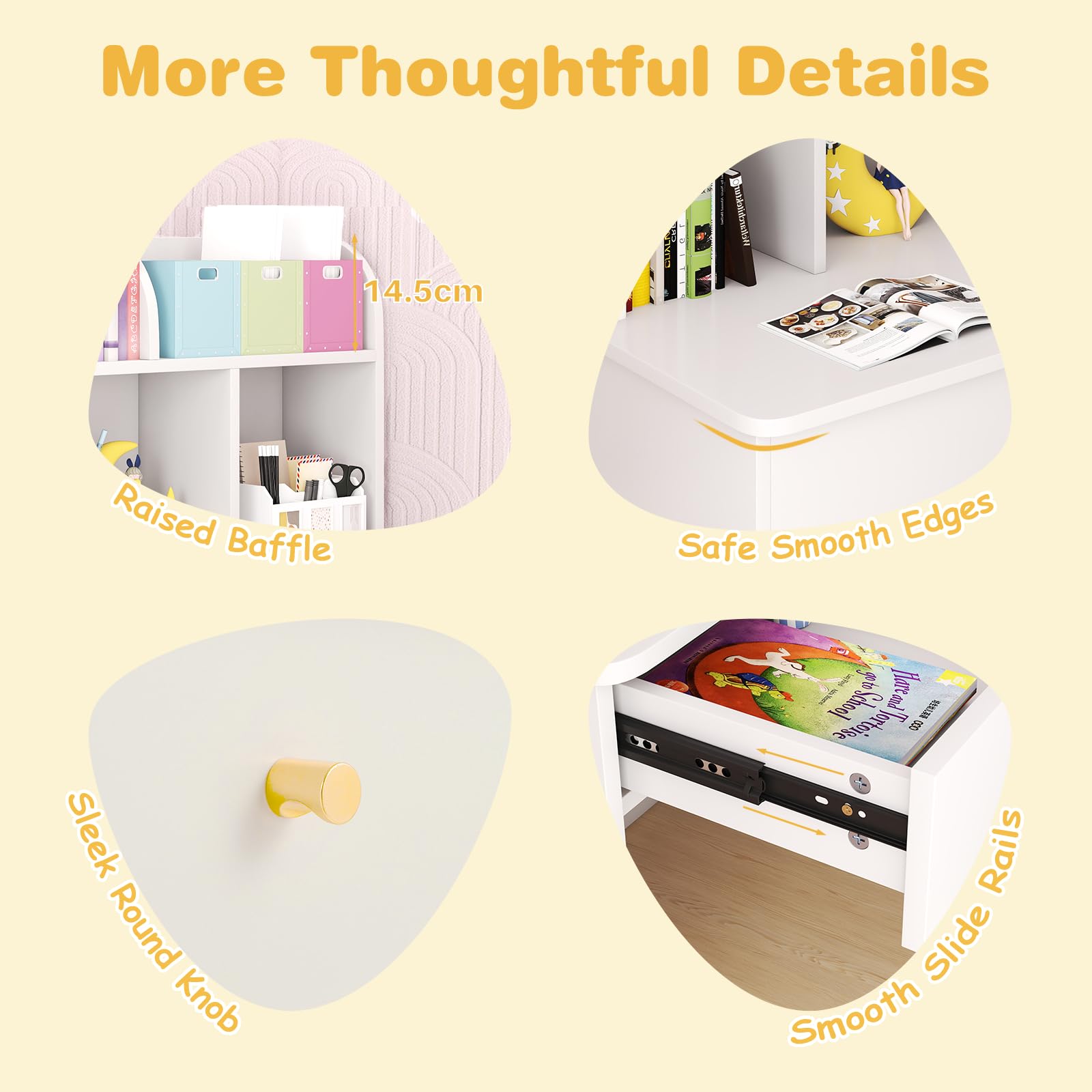 - ✔MORE THOUGHTFUL DETAILS- Designed with raised baffle, this kids' computer desk with hutch prevents items from falling off. The sleek round knob and smooth slide rails make the drawer easy to open and close. Thanks to easy-to-clean surface, this writing table simplifies tidying up after study sessions or creative projects.
