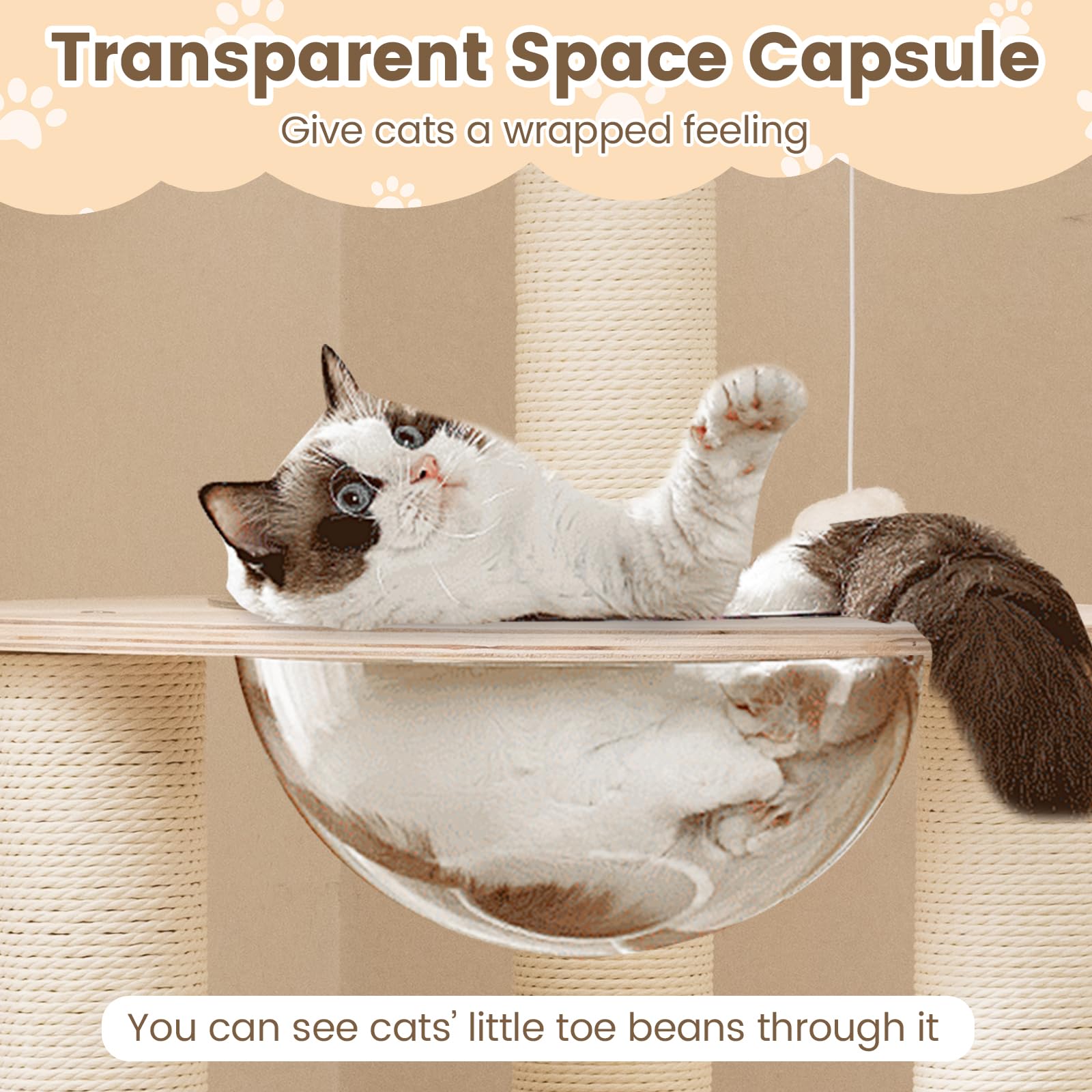 132cm Tall Wooden Cat Tree Solid Plywood Kitten Tower with Space Capsule