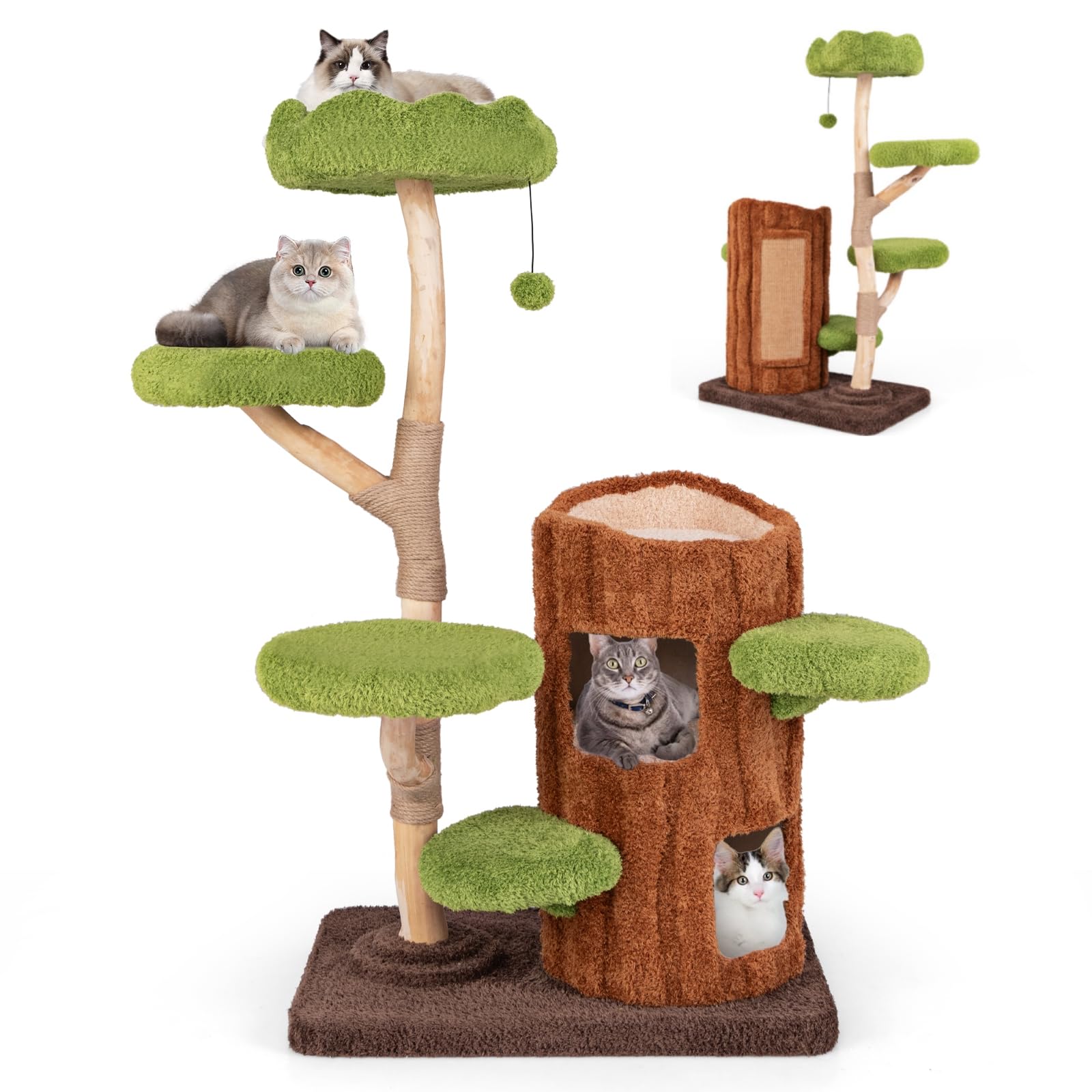 - ✔MORE FEATURES- The sisal scratching panel on the back of the condo allows for more scratching space, while the hanging ball provides extra amusement. The round platforms make it easy for cats to jump up and down, adding to the overall fun and comfort of this adorable cat furniture.