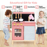 Kids Play Kitchen Set with Door Curtain and Stoves and Apron