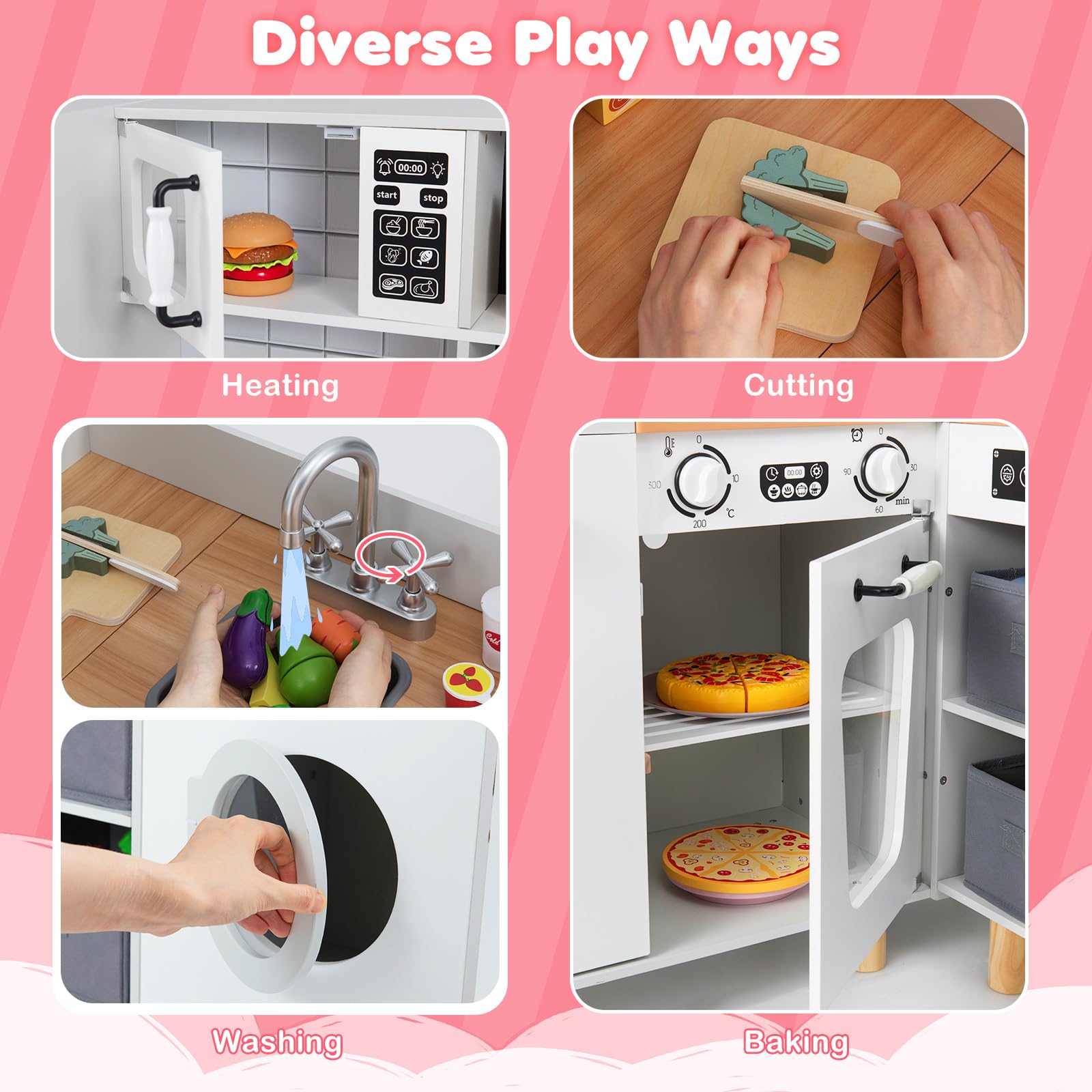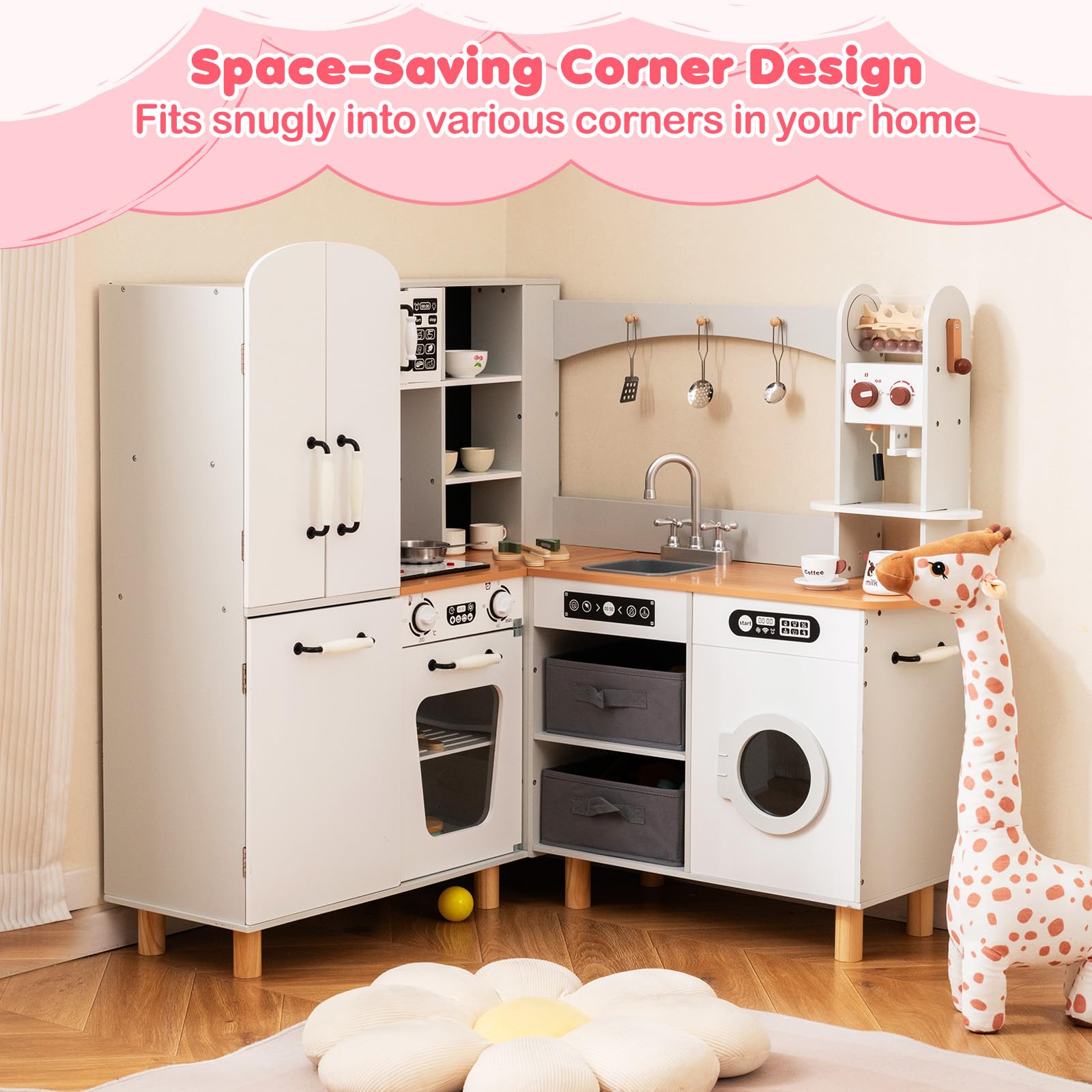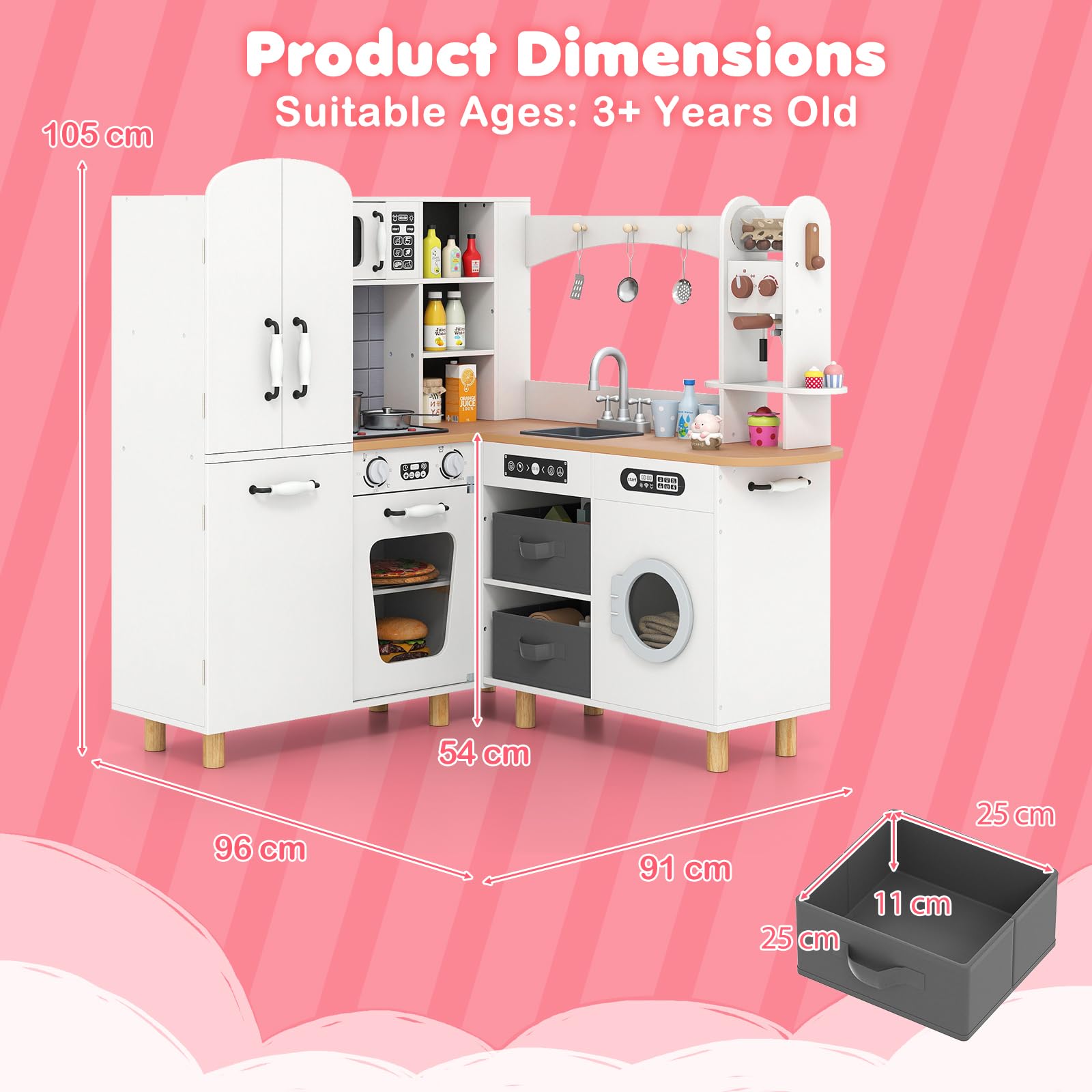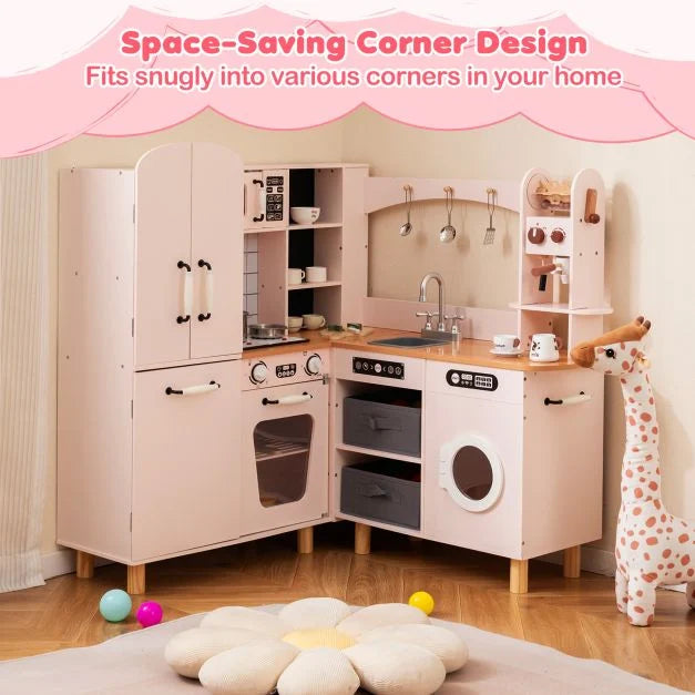 Wooden Corner Play Kitchen with Pine Wood Legs and Lights & Sounds