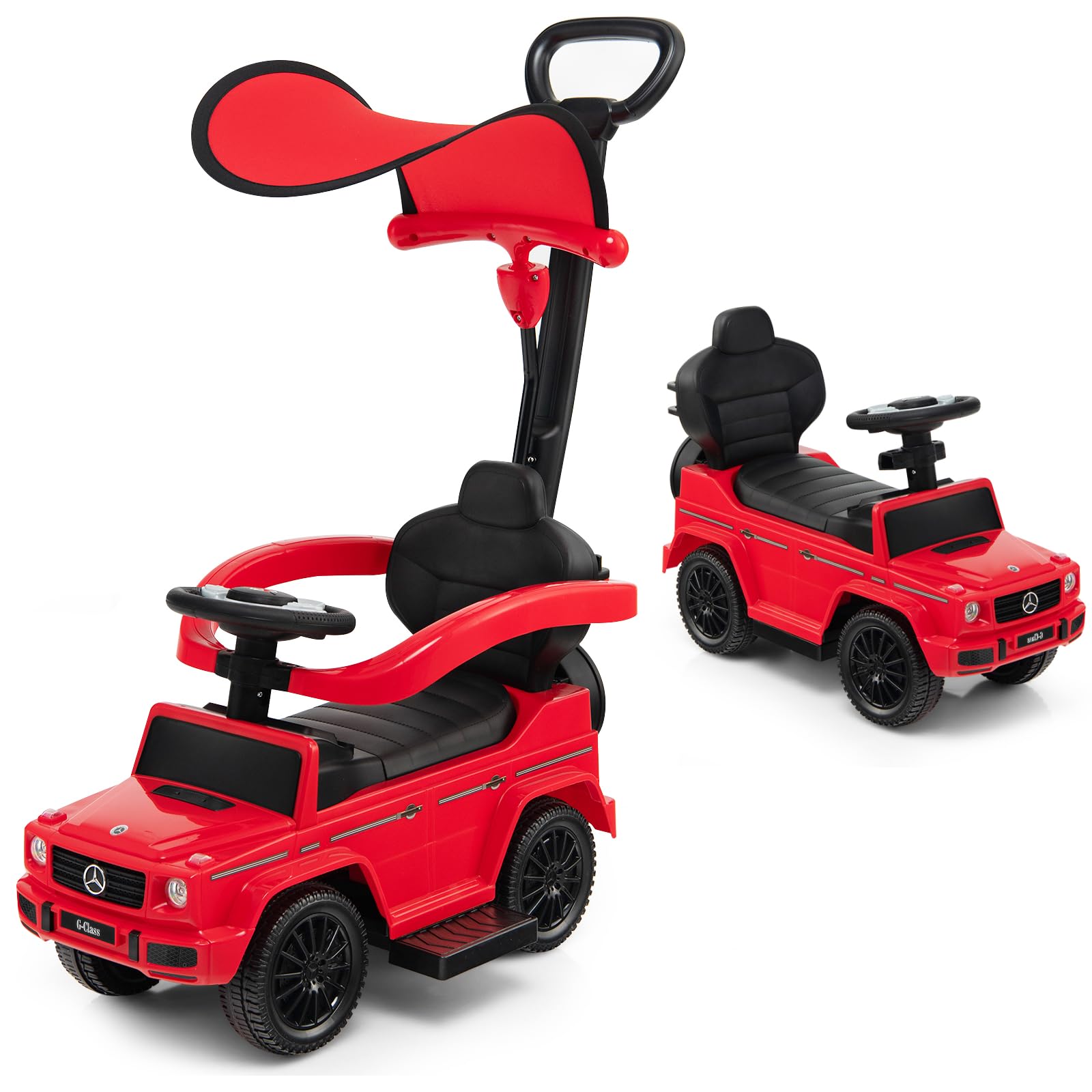 GYMAX 3 in 1 Kids Ride on Push Car, Licensed Mercedes Benz Push Along Car with Handle, Guardrails